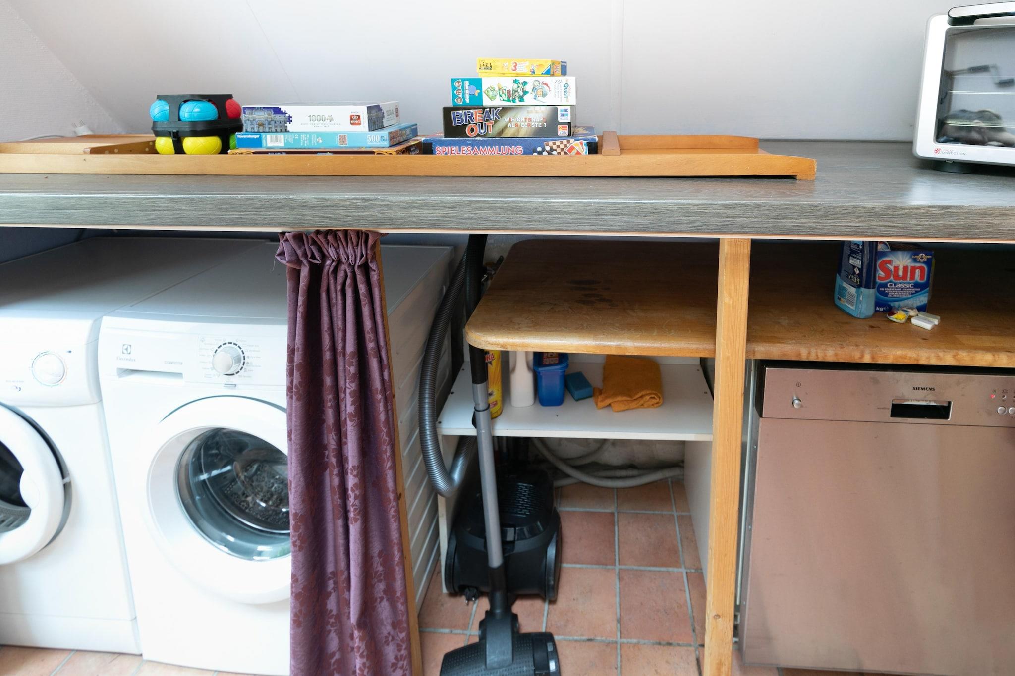 Stueetage: (Stue(Fjernsyn(Smart-TV), spisebord, kakkelovn(træ), sofahjørne, klimaanlæg), Køkken(kogeplade, elkedel, emhætte, kaffemaskine, espressomaskine, mikrobølgeovn, opvaskemaskine ), soveværelse(dobbeltseng(dobbelt tæppe, 140 x 200 cm)), badeværelse(bruser(enhed), håndvask, toilet, varme(elektrisk)), bryggers(køle-fryseskab)) På 1. etage: (soveværelse(dobbeltseng(dobbelt tæppe, 160 x 200 cm)), soveværelse(enkeltseng(tæppe, 90 x 200 cm), enkeltseng(tæppe, 90 x 200 cm), håndvask)) pulterkammer, Netflix, bruser med lysterapi, vaskemaskine, terrasse(privat, overdækket), have(privat, indhegnet), cykelopbevaring, havemøbler, solstole, grill, parkering, hængekøje, barneseng, luft til luft-varmepumpe, loungemøbler, hyggespil