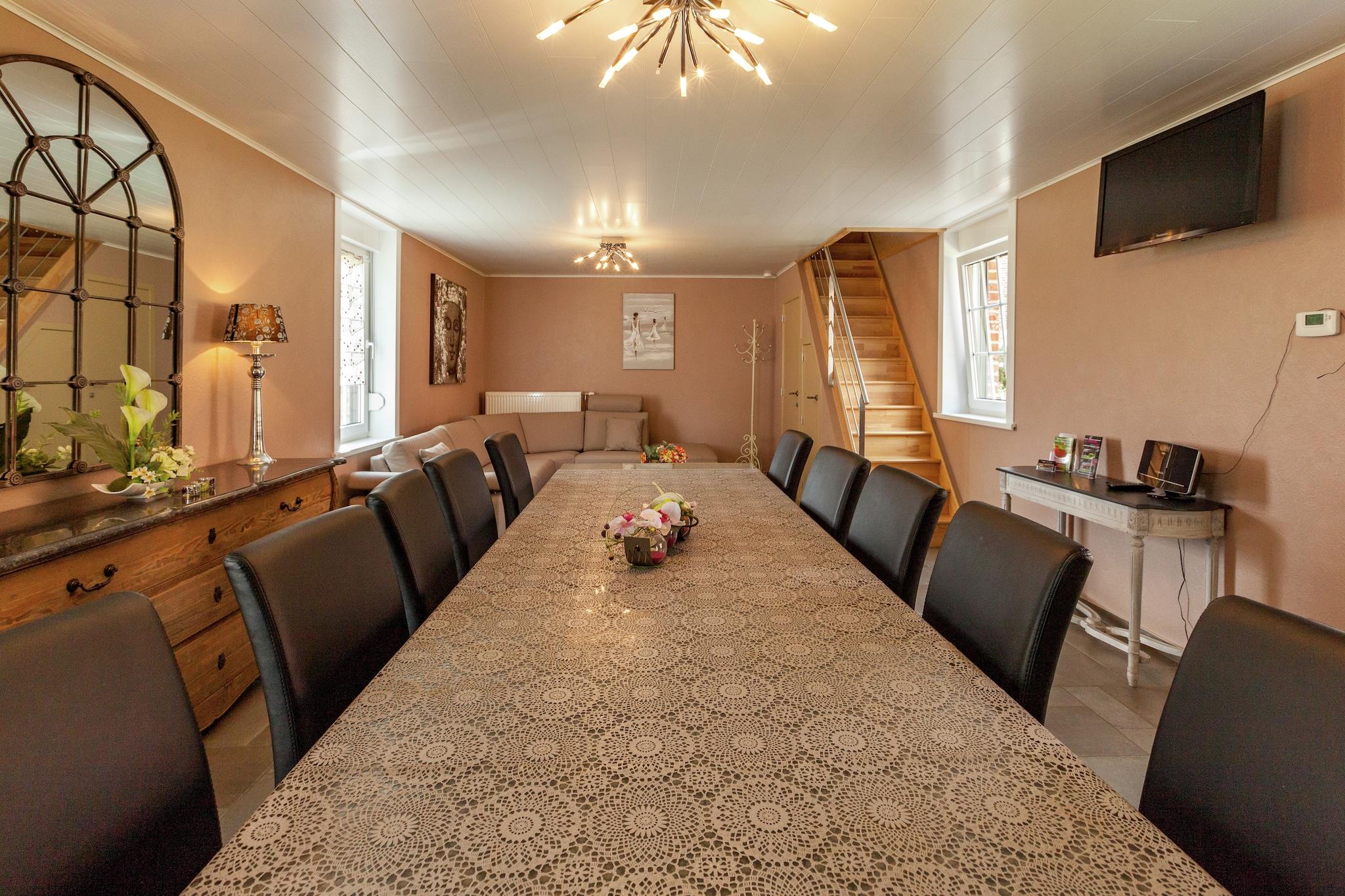 Dette rummelige feriehus i Le Bizet (Comines), Hainaut, kan komfortabelt rumme op til 10 gæster, perfekt til store familier eller grupper. Stueetagen har en stue, køkken og et praktisk toilet. Ovenpå er der fire soveværelser: et med en køjeseng, et andet med en dobbeltseng, et tredje med tre enkeltsenge og et master soveværelse med en enkelt- og dobbeltseng plus en privat bruser. Derudover indeholder huset yderligere to badeværelser med bruser og to ekstra toiletter for komfort. Underholdningsmulighederne omfatter tv, radio, cd-afspiller og bordfodbold. Familier vil sætte pris på børneseng, højstol, tørretumbler og parkeringsfaciliteter. Gratis Wi-Fi holder gæster forbundet under hele deres ophold. Beliggende kun 3 km fra byens centrum, skove og almindelige forsyninger, med restauranter i nærheden. Natteliv og en offentlig indendørs swimmingpool ligger inden for 10 km, og motorvejskrydset er kun 5 km væk, hvilket gør dette hjem både fredeligt og bekvemt tilgængeligt.