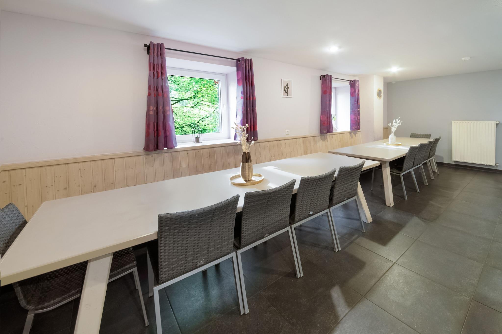 Velkommen til dette rummelige og stilfulde sommerhus i den fredfyldte landsby Walk, beliggende i det betagende landskab Les Hautes Fagnes i provinsen Liège. Med hyggelige værelser og moderne wellnessfaciliteter er dette store sommerhus perfekt til familier, venner eller grupper, der ønsker at slappe af, genoplade og genoprette forbindelsen til naturen. Sommerhuset tilbyder en privat sauna, infrarød sauna, solarium og et boblebad - ideelt til afslapning efter en dag med at udforske regionen. Til underholdning kan gæsterne nyde et veludstyret opholdsrum med billard og bordfodbold eller slappe af i den solbeskinnede have med volleyballbane, petanque og en legeplads. Området ligger i nærheden af Belgiens højeste punkt, Signal de Botrange, og Eifel Nationalpark og byder på naturskønne vandre- og cykelstier gennem hedeområder og skove. Naturelskere vil elske et besøg i naturreservatet Hautes Fens, hvor du kan se sjælden flora og fauna eller nyde sneskovandring om vinteren. Nærliggende Robertville-søen er perfekt til svømning, kajaksejlads eller en picnic ved søen, mens det middelalderlige Reinhardstein Slot tilbyder en historisk dagstur kun 15 minutter væk. For at smage på det lokale køkken, kan du spise på La Table de Maxime eller L’Art de Vivre i det nærliggende Waimes – begge berømte for deres kreative belgiske retter. Uanset om du søger wellness, udendørs eventyr eller en fredelig familieferie, tilbyder dette charmerende sommerhus en mindeværdig Ardenner-flugt. Mulighed for at leje sengelinned for EURO9 pr. person pr. ophold Turistskat: EURO1,25 pr. person pr. nat