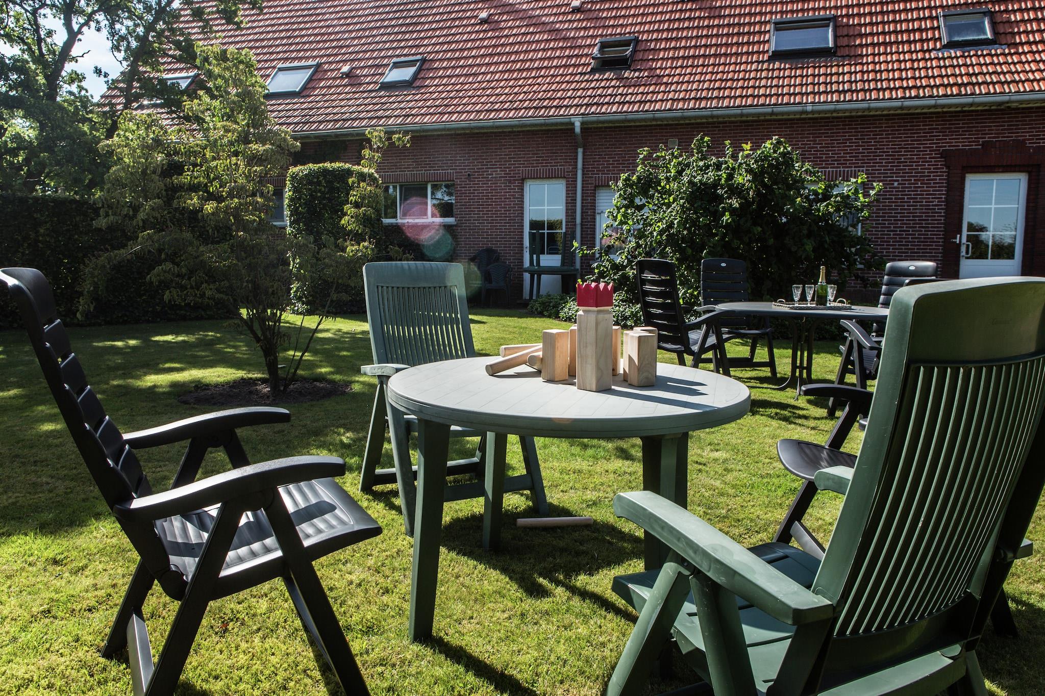 On the 1st floor: (Living room(TV(cable), dining table, seating area, stereo unit), Large kitchen(oven, freezer), bedroom(2x single bed), bedroom(2x single bed), bedroom(2x single bed), bathroom(shower, 2x washbasin, washing machine), bathroom(2x shower, 2x toilet), toilet) Attic: (Gallery bedroom(2x single bed)) heating(electric), garden, garden furniture, BBQ, children's bed, high chair, playpen