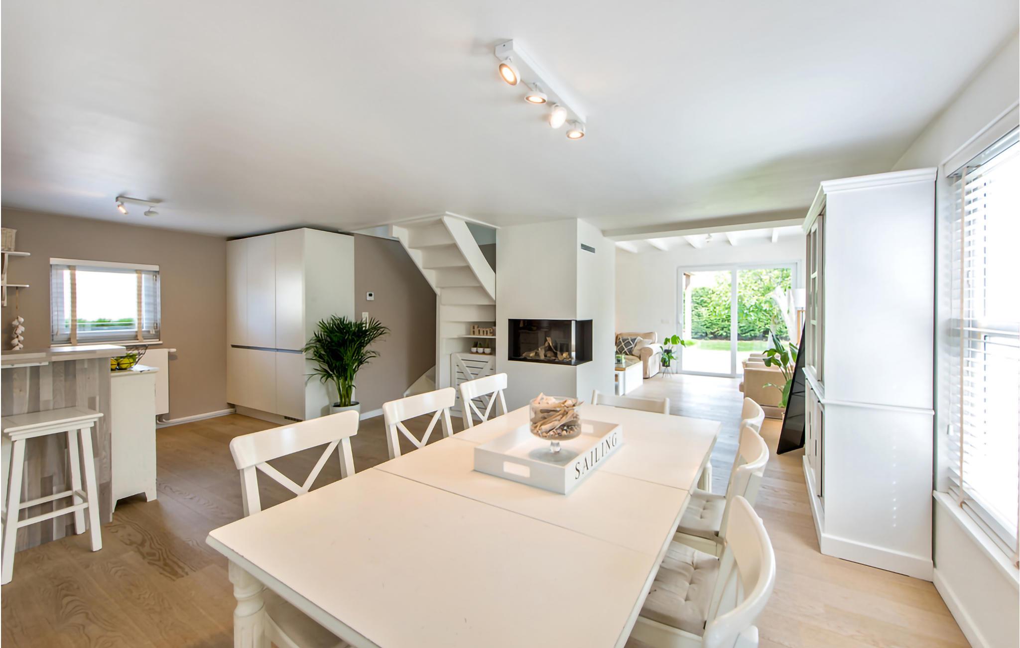 Dette perfekt indrettede hus har en indbydende have med en stor, åben terrasse og en vidunderlig overdækket terrasse med grill og terrassevarme. Når du træder ind i dette ekstremt attraktive feriehus, vil du straks føle dig hjemme. Den smukt møblerede stue har direkte adgang til haven og har et behageligt opholdsområde og et stort smart-tv. Der er også en rummelig spiseplads med en smuk pejs. Det fuldt udstyrede køkken har opvaskemaskine, en kombination mikrobølgeovn samt et bord med barstole. I stueetagen er der også et soveværelse med en dobbeltseng, et badeværelse med bruser og håndvask. Der er også et separat toilet og et bryggers med vaskemaskine og tørretumbler. På første sal er der et værelse med badeværelse, toilet og håndvask, soveværelse med dobbeltseng og soveværelse med dobbeltseng og dobbelt sovesofa. Feriehuset er udstyret med interiør af høj kvalitet og komfortable senge.