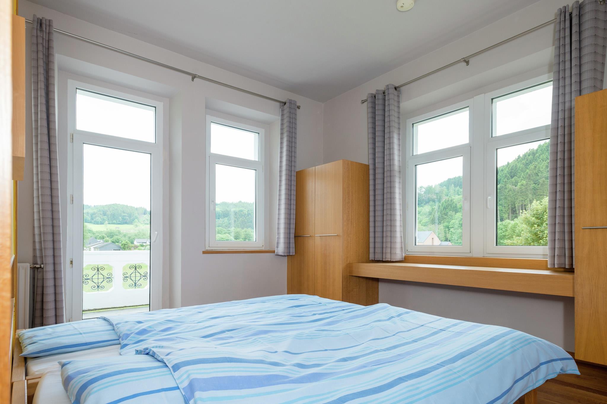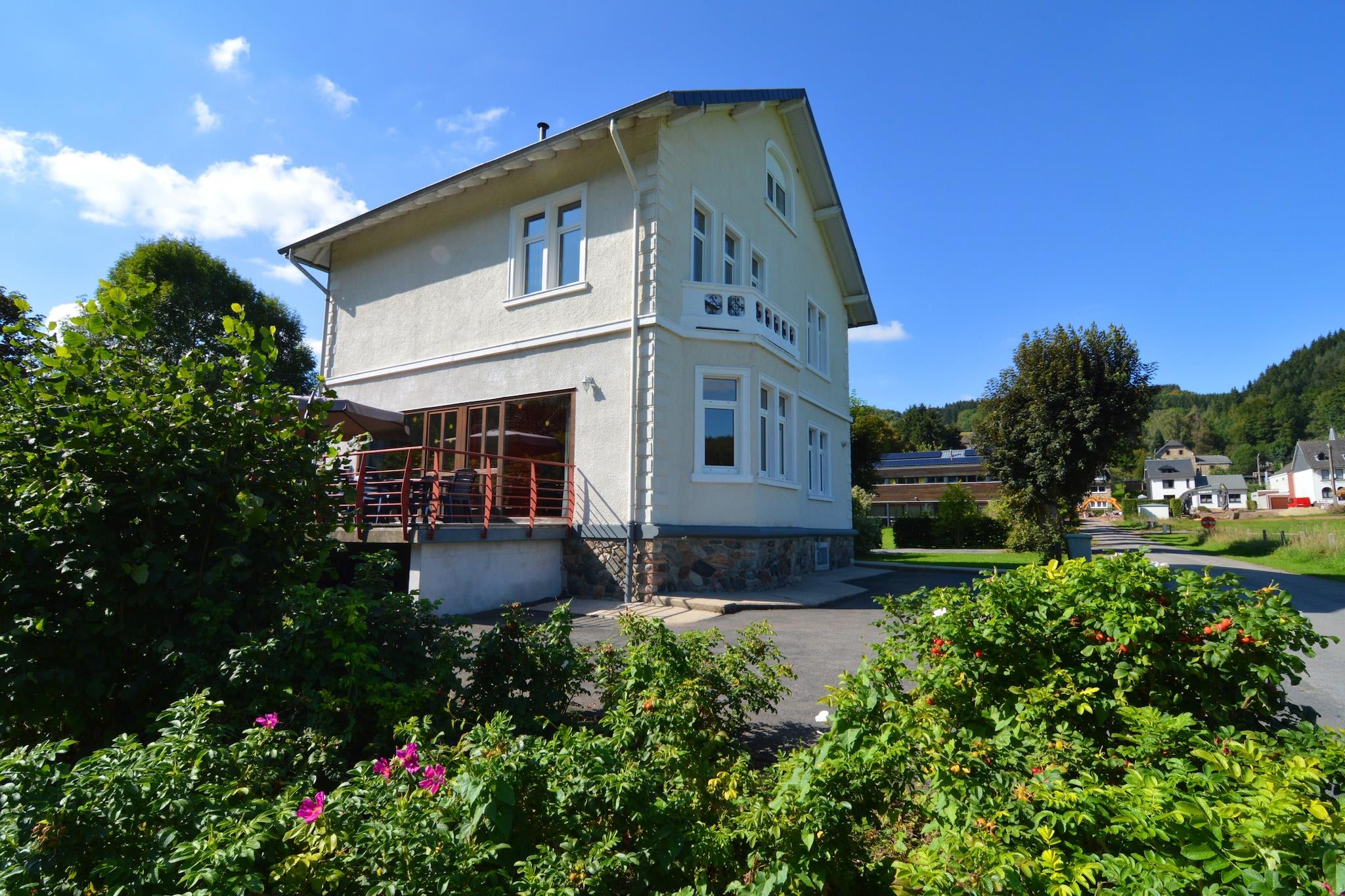 Stor villa fra 1930'erne, renoveret i 2002 og beliggende 3 kilometer fra centrum af Malmedy i et roligt villakvarter i gåafstand fra Warche floden. Ideel til familier og slægtninge. Denne villa har en stue med et stort opholdsområde og en åben pejs. Der er fuldt udstyret åbent køkken med spisebord til op til 18 personer. Du finder også et afslapningsrum med stor sauna og spabad, hvor du kan slappe helt af. Der er et spillelokale i garagen med bordfodbold, bordtennis, fjernsyn og en dartskive. I den store have finder du en terrasse med grill og legeredskaber. Overfor huset ligger en fodbold- og volleyballbane, som deles med en anden villa 100 meter væk. Regionen byder på mange muligheder for vandre- og cykelture. Malmedys centrum ligger 3 kilometer væk, og du vil finde Francorchamps-kredsløbet og naturområdet Høje Fens 6 kilometer fra villaen. Slottet Reinhardstein og søen Robertvilla ligger 12 kilometer væk, og der er forskellige ski- og langrendsløjper inden for en radius af 15 kilometer. Bemærk venligst: Der er fodbold-, volleyball- og petanquebane foran huset, som I deler med nabohuset. Det er strengt forbudt at arrangere studenterfester, polterabender eller drikkeselskaber i dette hus, ellers risikerer du at miste adgangen til boligen.