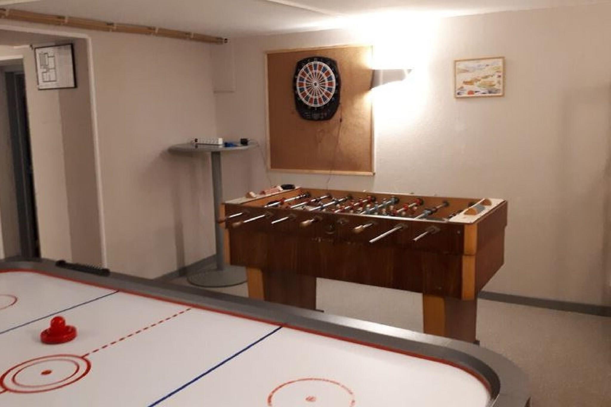 Stueetage: (Stue(Fjernsyn, kakkelovn(træ), CD-afspiller), åbent køkken(kogeplade(Komfur med fem kogeplader, glaskeramisk), elkedel, kaffemaskine, ovn, mikrobølgeovn, opvaskemaskine , køle-fryseskab), toilet) Mellemetage: (soveværelse(enkeltseng, enkeltseng)) På 1. etage: (soveværelse(2x enkeltseng, køjeseng), Soveværelse med badeværelse(2x enkeltseng, badekar, bruser), Soveværelse med badeværelse(2x enkeltseng, badekar, bruser), Soveværelse med badeværelse(2x enkeltseng, køjeseng, bruser), toilet) På 2. etage: (soveværelse(2x enkeltseng), soveværelse(2x enkeltseng), badeværelse(badekar, bruser), toilet) Kælderetage: (opholdsrum(bordfodbold, airhockey), loungerum(Bubble bath, bruser, sauna)) pulterkammer(bordtennisbord), køjeseng, pejs, mikrobølgeovn, opvaskemaskine , badekar eller bruser, Bubble bath, bruser, sauna, vaskemaskine, terrasse, have(privat, 5000 m2), cykelopbevaring, havemøbler, havemøbler, grill, grill, parkering, Parasol, petanquebane, legeredskaber, fodboldmål, barneseng, barnestol, barnestol