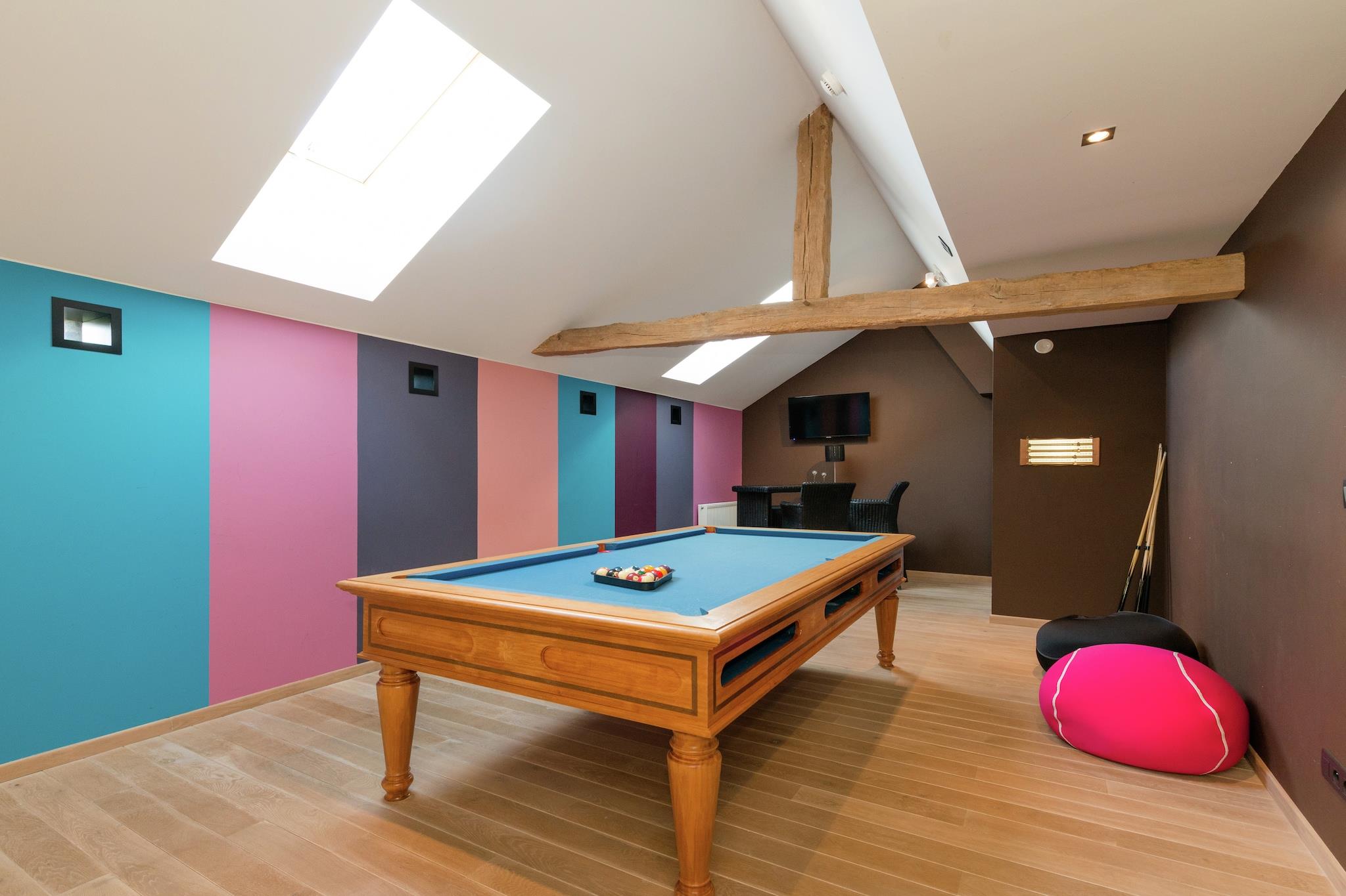 Beliggende nær en fredelig gård i Marche-en-Famenne, tilbyder dette maleriske 6-værelses feriehus en varm og indbydende tilflugtssted for op til 14 gæster. Huset er smagfuldt renoveret med rustik charme og har boblebad, gaming-computer og børnevenlige faciliteter, hvilket gør det ideelt for store familier eller grupper, der søger både komfort og landlig charme. Boligen indeholder et fuldt udstyret køkken, 4 badeværelser og en rummelig stue/spisestue med brændeovn. Udenfor kan du nyde en møbleret have, to terrasser, en grill og en trampolin til børnene. Der er også en børneseng, høj stol, cykelopbevaring og gratis parkering. Sengelinned er inkluderet, og WiFi er tilgængeligt overalt. Udforsk regionen med besøg i grotterne i Han-sur-Lesse, Hotton, Chevetogne rekreative område eller middelalderbyerne Durbuy og Wéris. Butikker ligger kun 300 m væk, og restauranter ligger 4 km fra boligen. Liège Lufthavn ligger 53 km derfra. Bemærk venligst: ungdomsgrupper og gæster under 20 år er ikke tilladt, og boligen deler ejendom med boligejerens bolig.