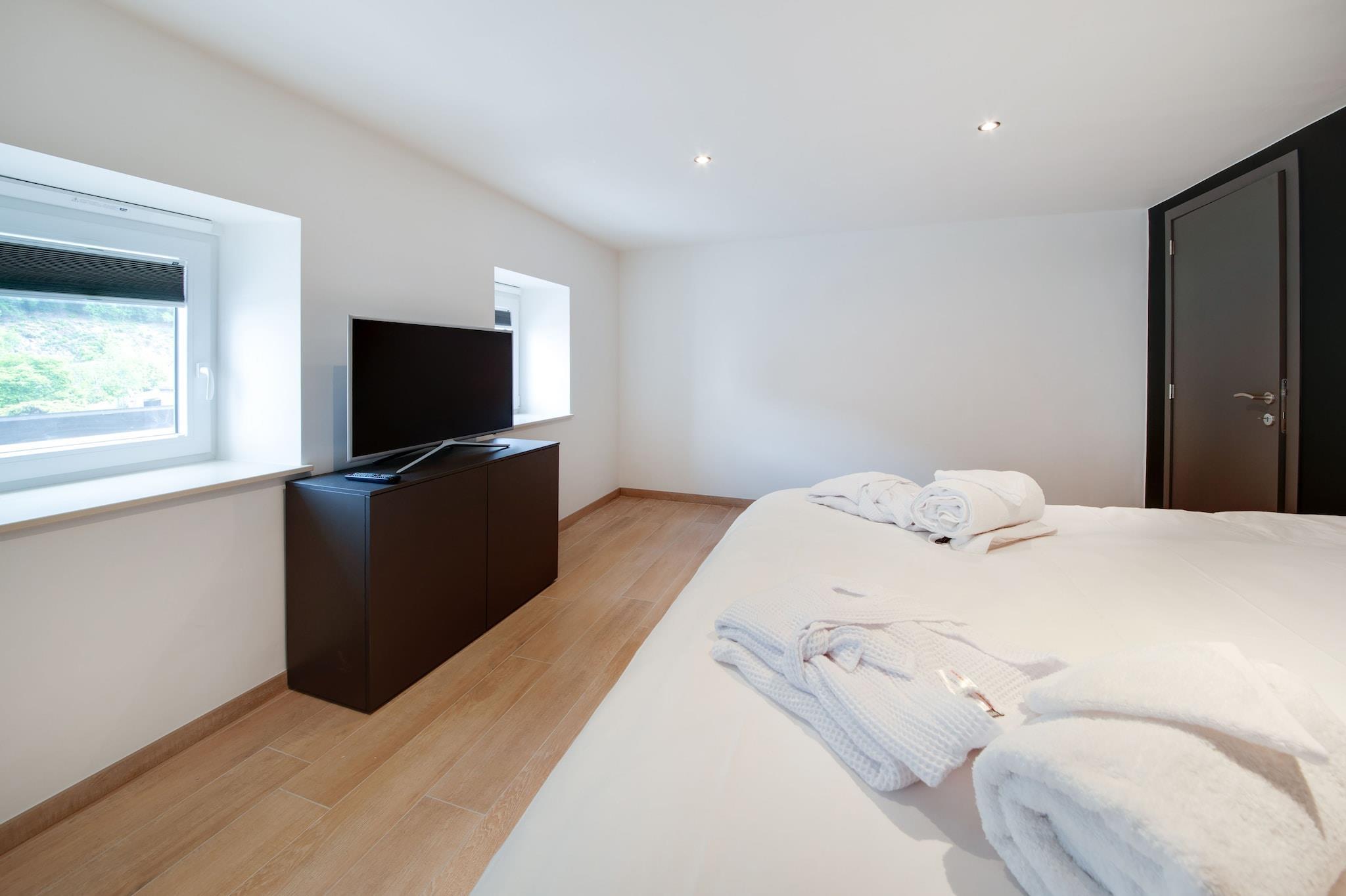 Dette stilfulde feriehus i Marchin tilbyder et fredeligt tilflugtssted med moderne bekvemmeligheder, kun 2,6 km fra den pulserende by Huy. Ideel til familier eller små grupper, det er perfekt placeret til at udforske kulturelle perler som Collégiale Notre-Dame de Huy og Citadel of Huy. Naturelskere kan nyde naturskønne gåture langs Hoyoux-floden eller besøge Château de Moha og Mont Mosan dyrepark for familievenlig sjov. Huset er fordelt på tre etager og har et fuldt udstyret åbent køkken med espresso- og filterkaffemaskiner, ovn, opvaskemaskine og blender. Stuen/spisestuen har et tv og høj stol, mens soveværelserne ovenpå tilbyder fleksible sovearrangementer med en dobbeltseng, to enkeltsenge og en sovesofa. To badeværelser, centralvarme, aircondition og en vaskemaskine sikrer komfort året rundt. Udendørs kan gæsterne slappe af i boblebadet, nyde måltider på terrassen eller gøre brug af grillen og havemøblerne. Marchin og det nærliggende Huy tilbyder fremragende spisemuligheder. Nyd raffineret køkken på Restaurant 1660, nyd charme ved floden på La Tour Colombes, eller forkæl dig selv med gourmetkreationer på Arabelle Meirlaen. Uanset om du udforsker slotte, slapper af i haven eller spiser under stjernerne, er dette hjem en perfekt base for dit Ardennereventyr.
