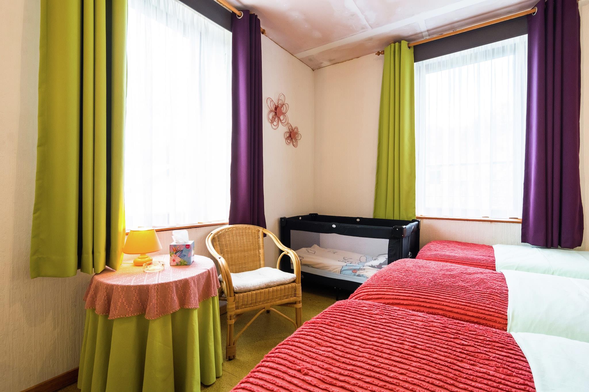 We werden uitgebreid welkom geheten. De gastvrouw is vriendelijk. Het is een groot huis met veel aandacht voor de kinderen. Geen gebrek aan kopjes, borden,bestek en andere huishoudelijke artikelen.Jammer van de smalle trappen. Wij hebben een heel leuk en gezellig lang-weekend gehad.