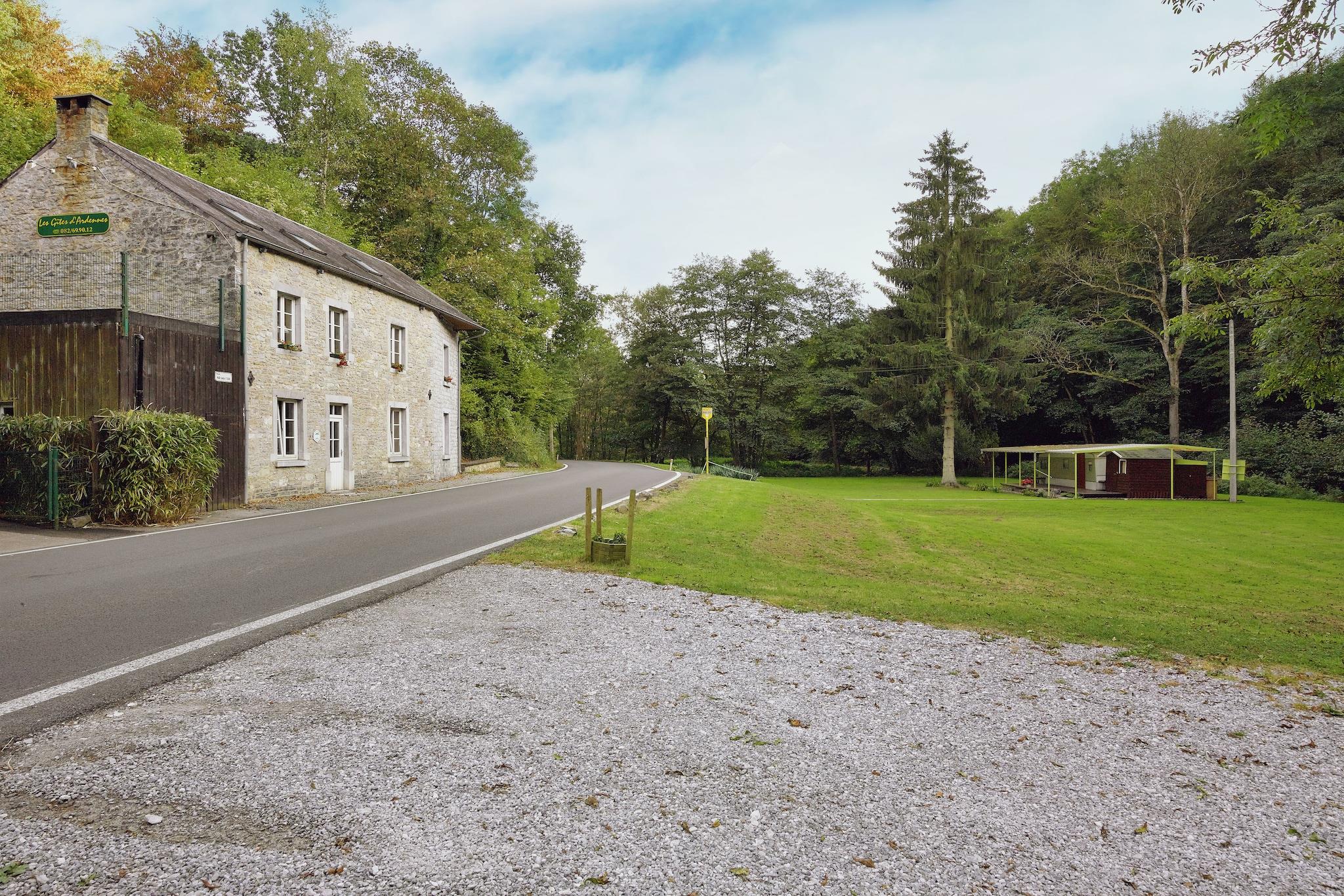 Beliggende lige uden for den fredelige landsby Sosoye (Anhée), er dette 7-værelses feriehus perfekt til familiesammenkomster eller grupperejser med op til 15 gæster. Nyd aftenen på terrassen med grill og vin, eller slap af i den møblerede have med en god bog. Et kæledyr er velkommen mod et ekstra gebyr. Huset er omgivet af Molignée-dalen og ligger tæt på en sø (1 km) og populære attraktioner som Les Jardins d'Annevoie, Maredsous Abbey, Castle Montaigne og Les Draisines de la Molignée. Butikker og restauranter ligger kun 12 km væk, og byens centrum er 15 km til en dag med udforskning. Indenfor har boligen centralvarme, en hyggelig stue med pejs, en veranda til fælles måltider og et veludstyret køkken. Bemærk venligst: grupper af unge, studenterfester og højlydte sammenkomster er ikke tilladt. Et roligt og rummeligt tilflugtssted i hjertet af Ardennerne.