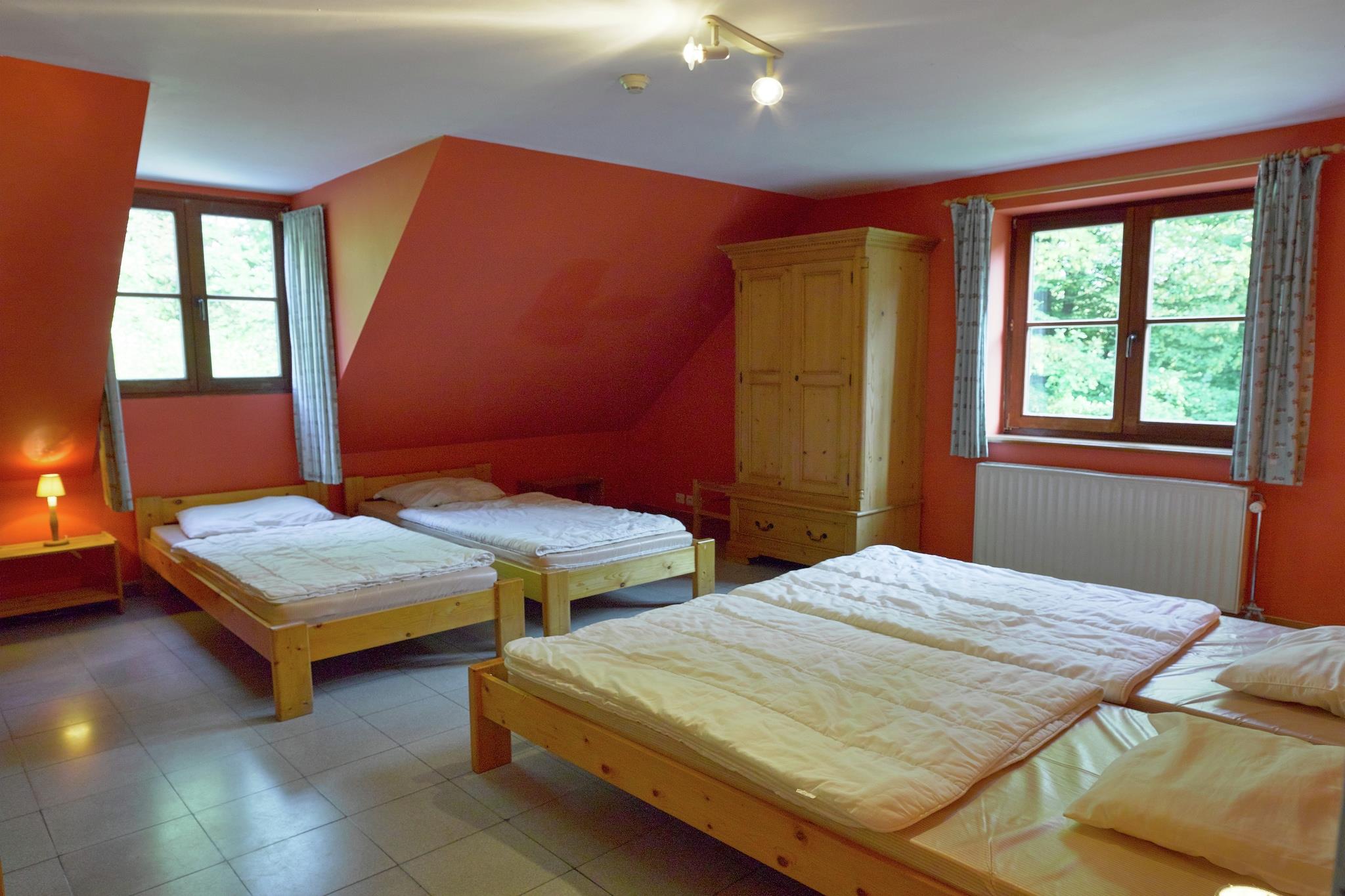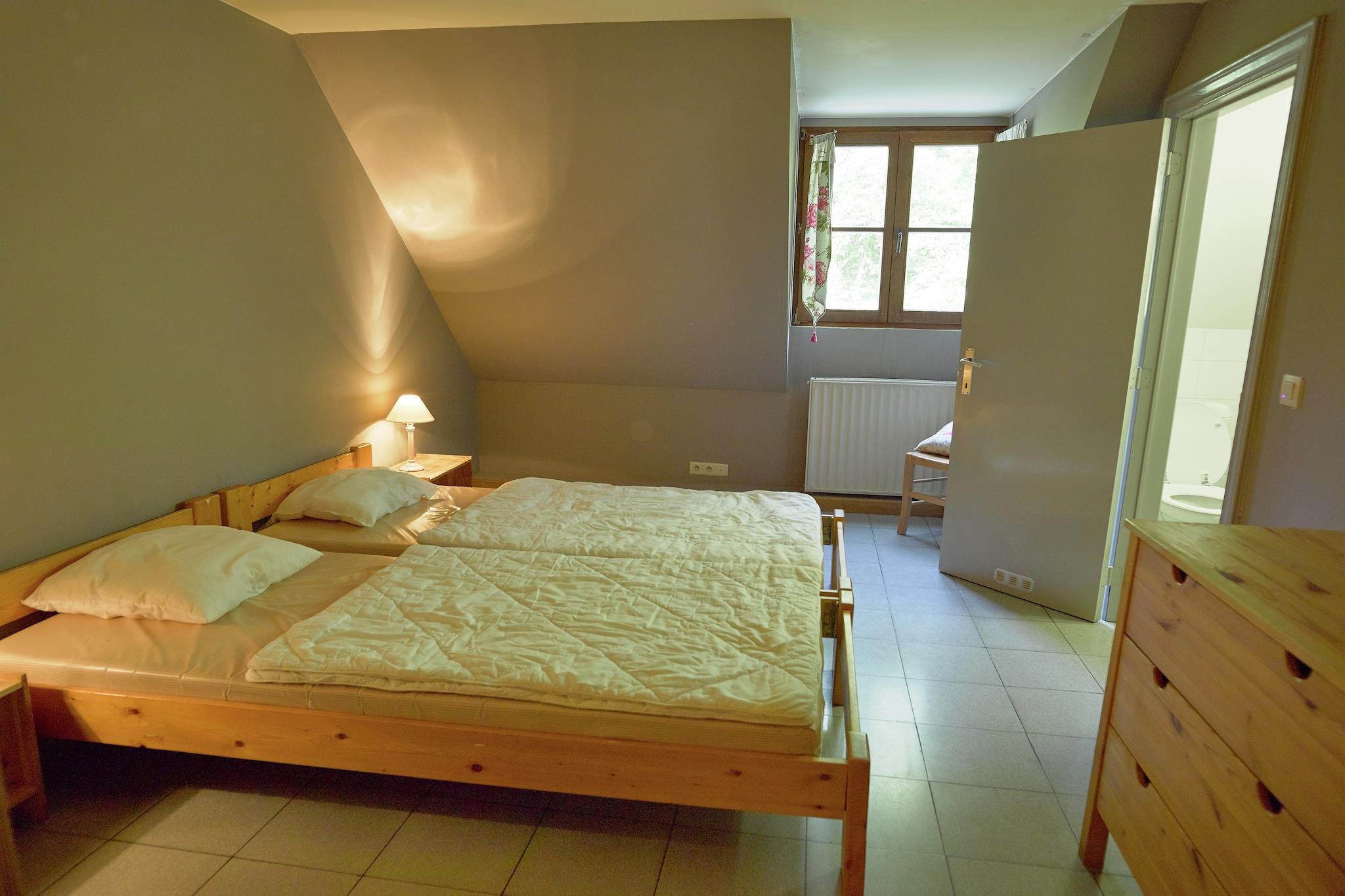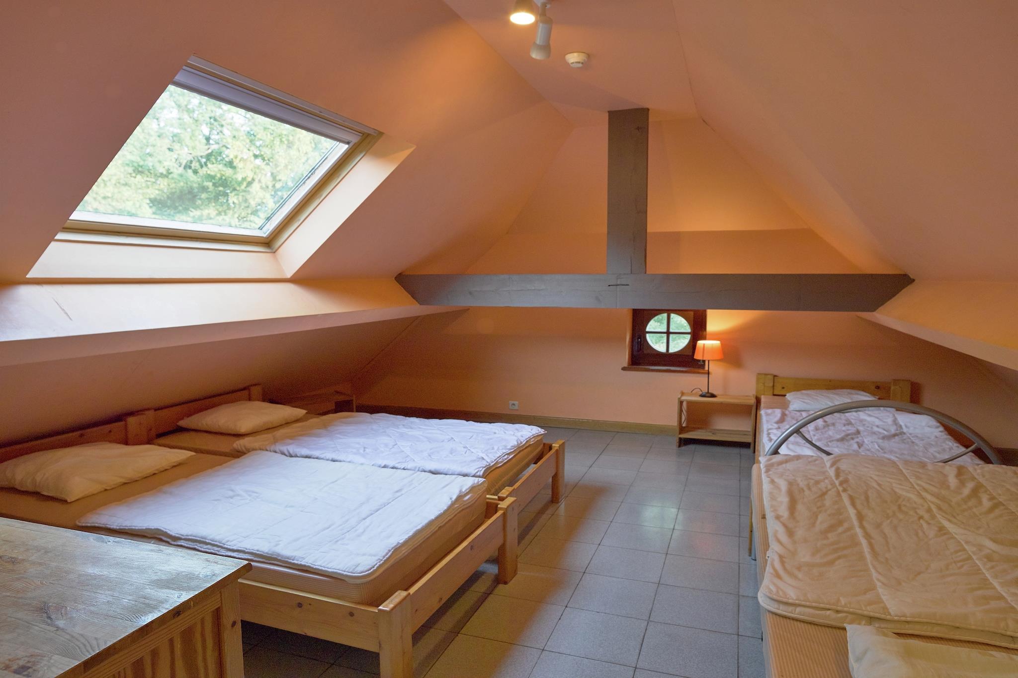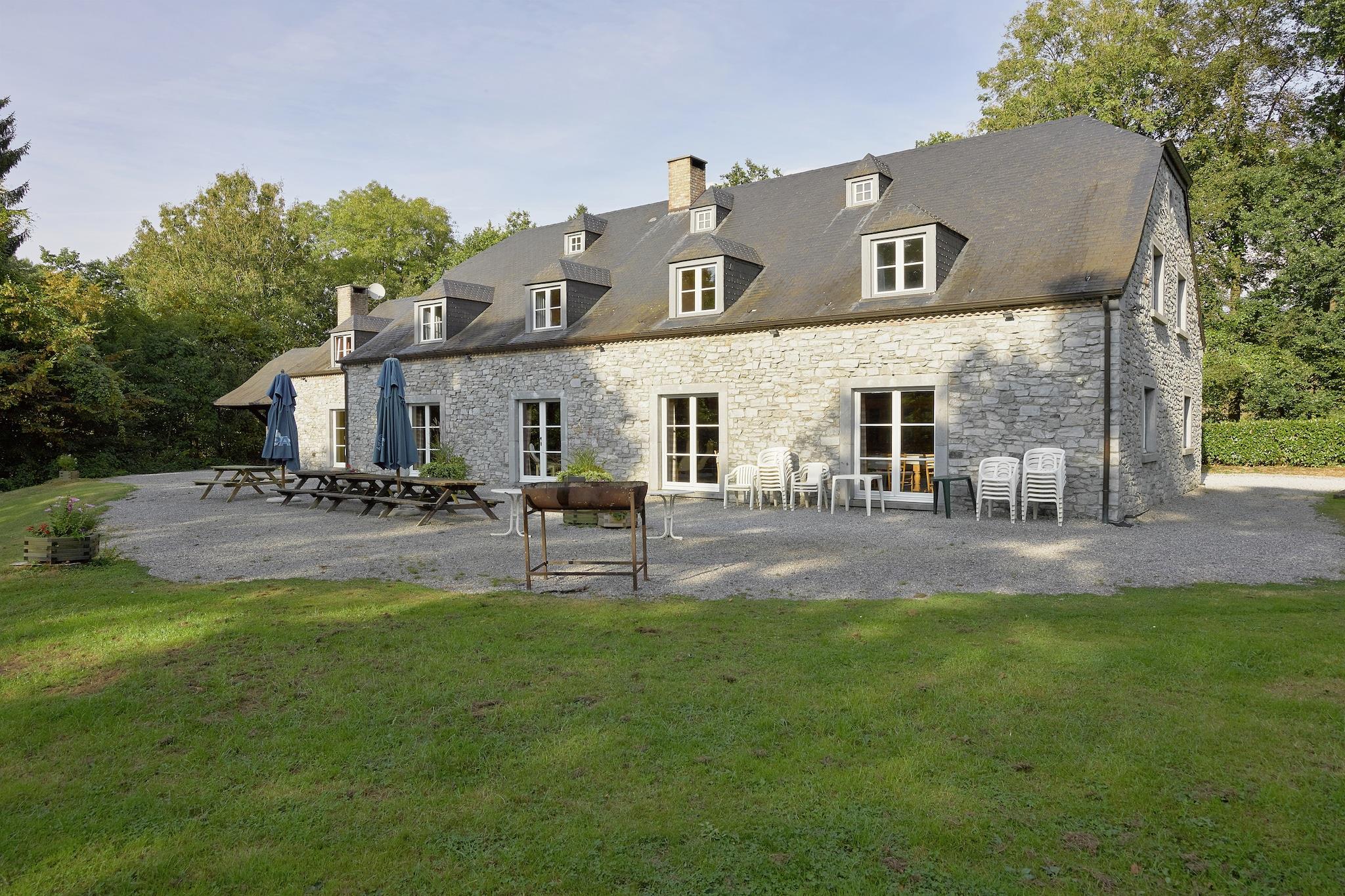 Gemt i en afsondret dal omgivet af skov, er dette 10-værelses feriehus i Sosoye (Anhée) ideel til store familiesammenkomster eller grupperejser på op til 30 gæster. Nyd aftenen på den private terrasse med grill, eller slap af i den indhegnede have med en dam, perfekt for børn at strejfe frit omkring. Beliggende kun 1 km fra butikker og restauranter, og 5 km fra byens centrum og en naturskøn sø, tilbyder boligen nem adgang til Dinant, lokale slotte og naturreservater. Uanset om du udforsker regionen eller nyder en stille dag i, tilbyder denne ejendom det bedste fra begge verdener. Indenfor har boligen centralvarme, et veludstyret køkken og et legerum med bordtennis. Der er en børneseng og høj stol til de små. Med sine fredelige omgivelser og rummelige indretning er dette en perfekt base for både naturelskere og kultursøgende.