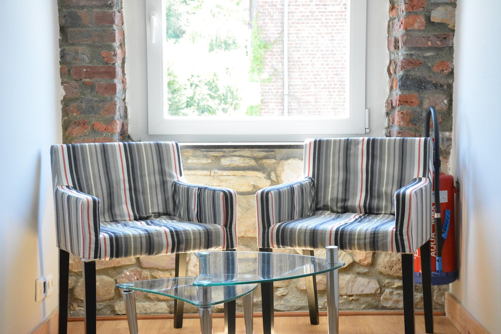 Marenne er en lille landsby på højderne af dalen mellem Marche-en-Famenne og Hotton. Stedet er ideelt til fuldt ud at nyde charmen i Ardennerne: Hotton og Durbuy er ikke langt, med alle deres seværdigheder. Meget gode cykelture eller vandreture står til din rådighed (huset har et hus til dine cykler). Ourthe (og dens berømte kajak nedstigninger) passerer i nærheden, og store skove ligger tæt på huset. Der er endda en fremragende gourmetrestaurant i landsbyen. Huset, på en lille vej med meget lidt trafik, er meget stille: man kan kun høre fuglene! Inde er alt for din komfort: fuldt udstyret køkken, åben til en stor stue-spisestue. Værelserne er rummelige og meget lyse. En dejlig terrasse er til rådighed for at nyde haven og en god grill. Der er også et bordtennisbord. Der er to badeværelser og et (smukt) ekstra brusebad i stueetagen. Det ideelle sted at tilbringe et par rolige dage i Ardennerne!