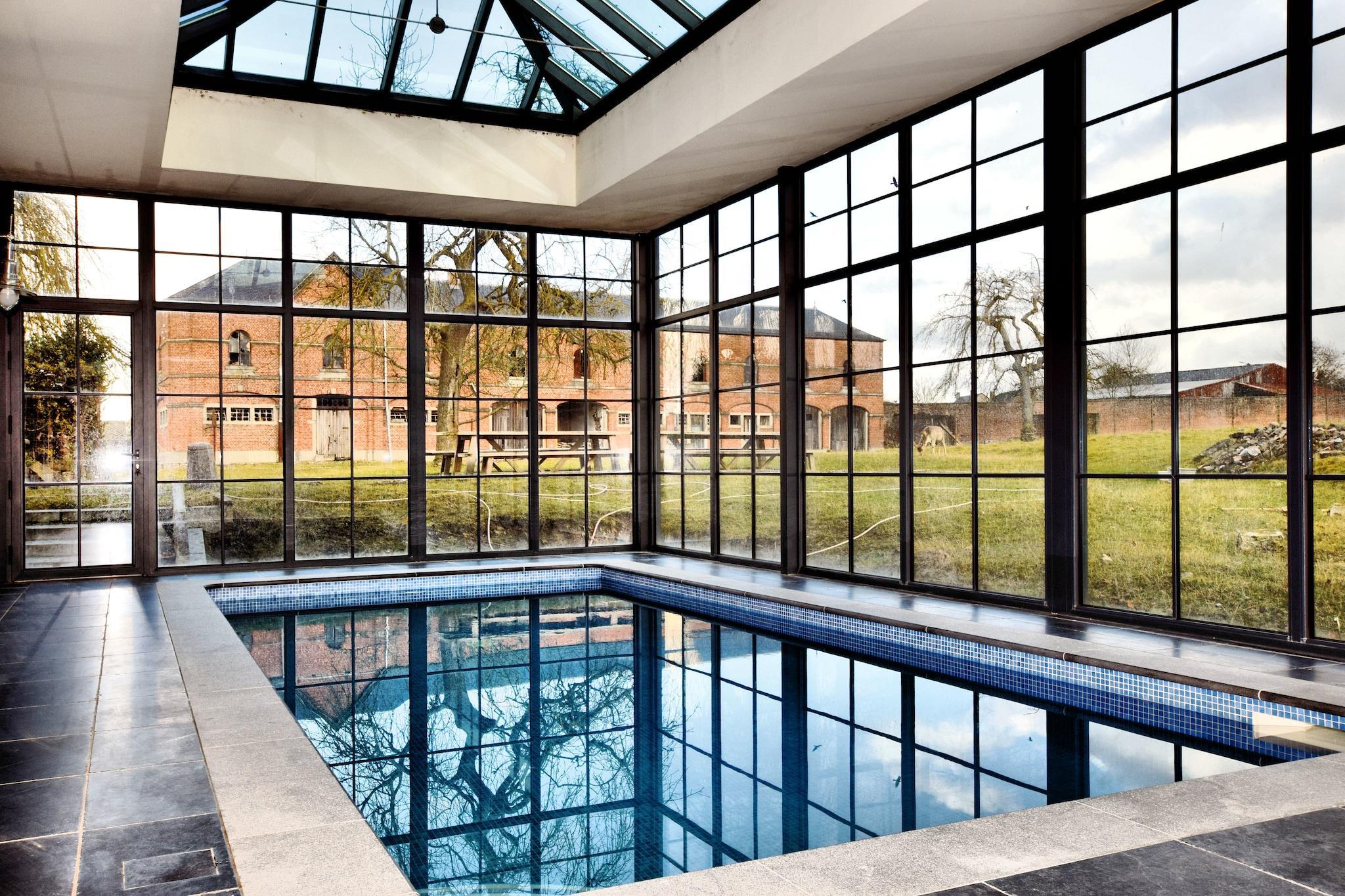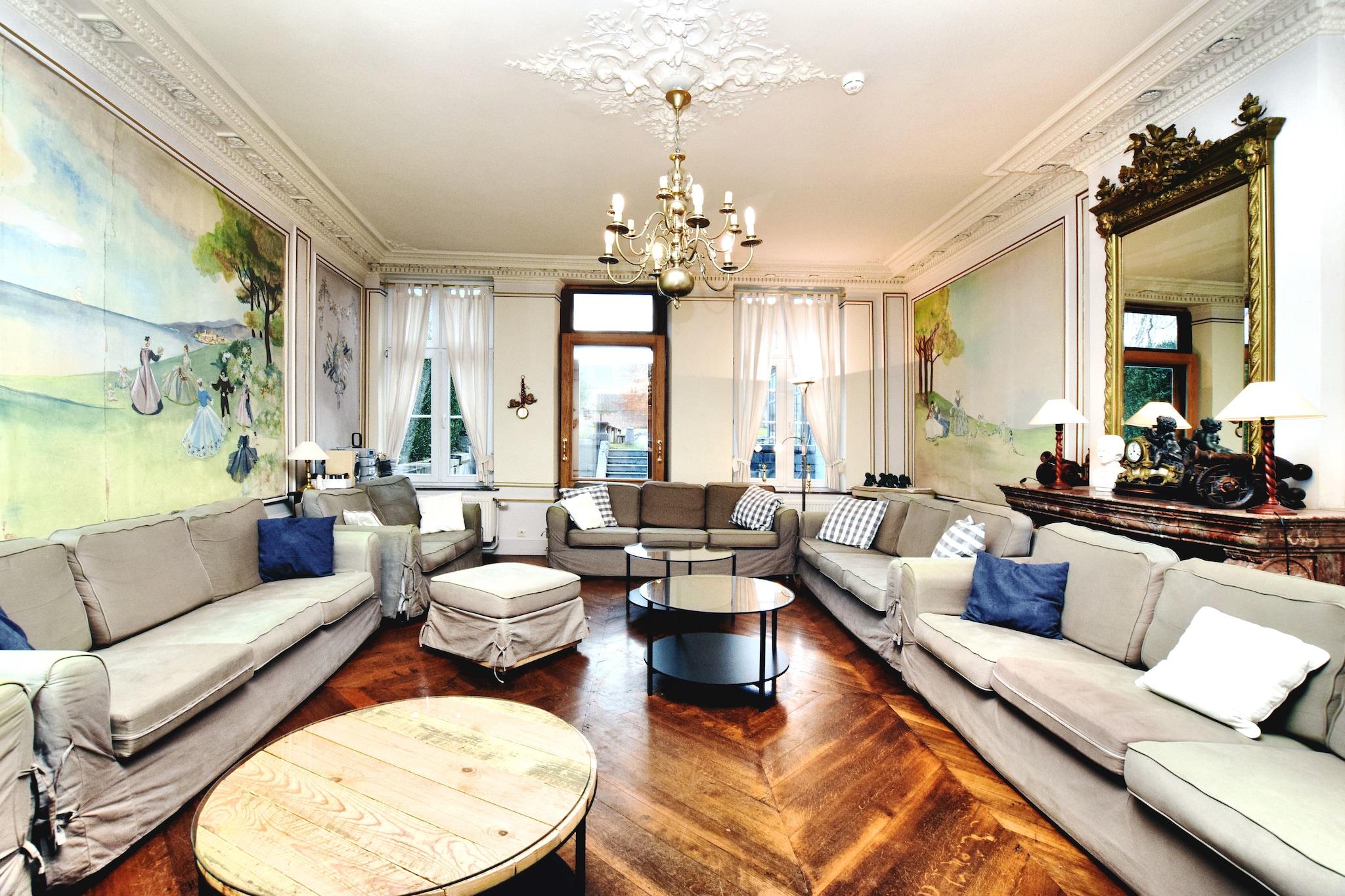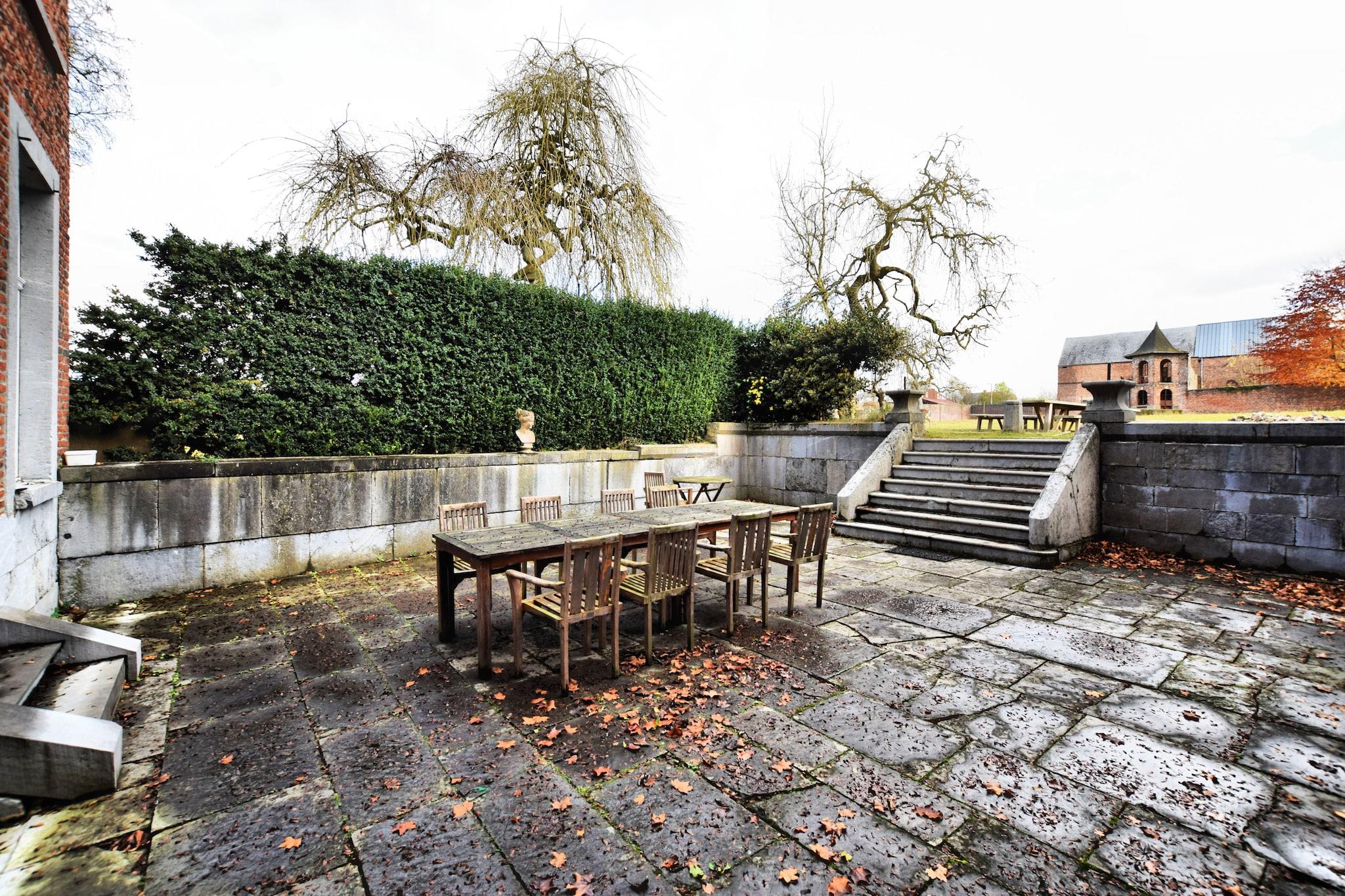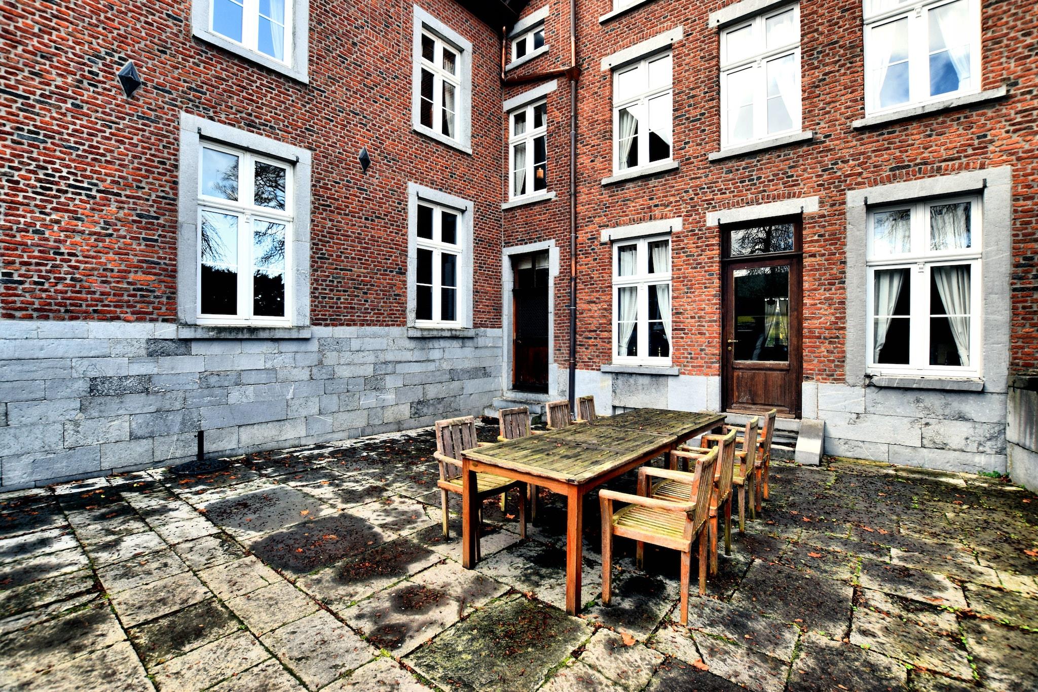 Dette luksuriøse palæ med 10 soveværelser i Mesnil-Saint-Blaise er perfekt til at være vært for store grupper på op til 25 gæster. Uanset om du planlægger en familiesammenkomst, et gensyn med venner eller et professionelt tilbagetog, tilbyder denne elegante ejendom de ideelle rammer. Beliggende i hjertet af landsbyen, kun 1 km fra byens centrum og vigtige butikker, med charmerende restauranter en kort køretur væk. Palæet kan prale af et fantastisk, autentisk ydre og et smukt bevaret interiør, der afspejler fortidens charme. Med to hyggelige stuer, en rummelig spiseplads og en separat spisestue med tv, er der masser af plads til, at alle kan samles eller finde privatliv. Udenfor tilbyder den ekspansive have en unik oplevelse, hvor hjorte strejfer frit, hvilket bidrager til den fredelige, landlige stemning. Ejendommens højdepunkt er dets splinternye wellness-område med en privat opvarmet indendørs swimmingpool, sauna og infrarød sauna. Uanset om du nyder et varmt bad om vinteren, mens du ser på den snedækkede have eller køler af om sommeren efter solbadning, sikrer dette rum afslapning hele året rundt. Et virkelig mindeværdigt ophold venter i dette rummelige og stilfulde Ardennerne-retræte.