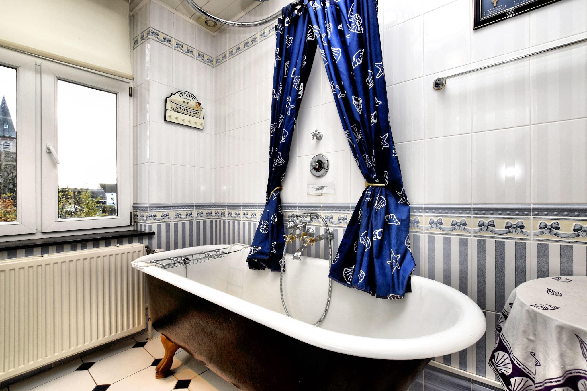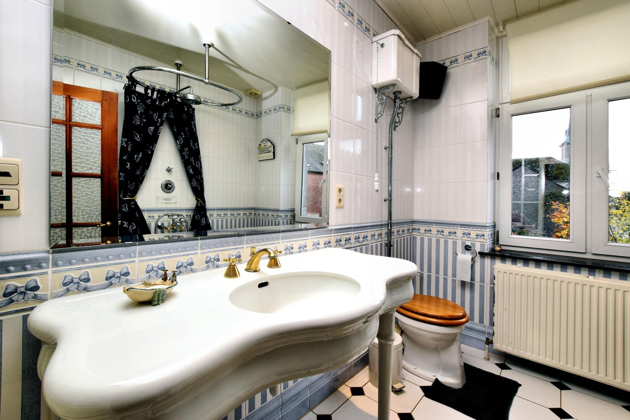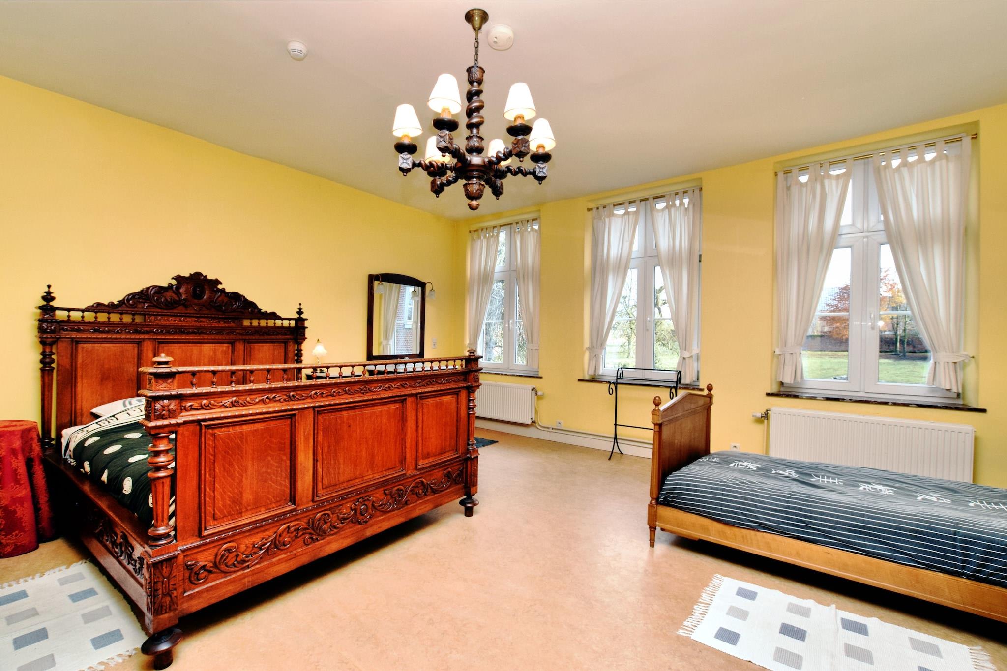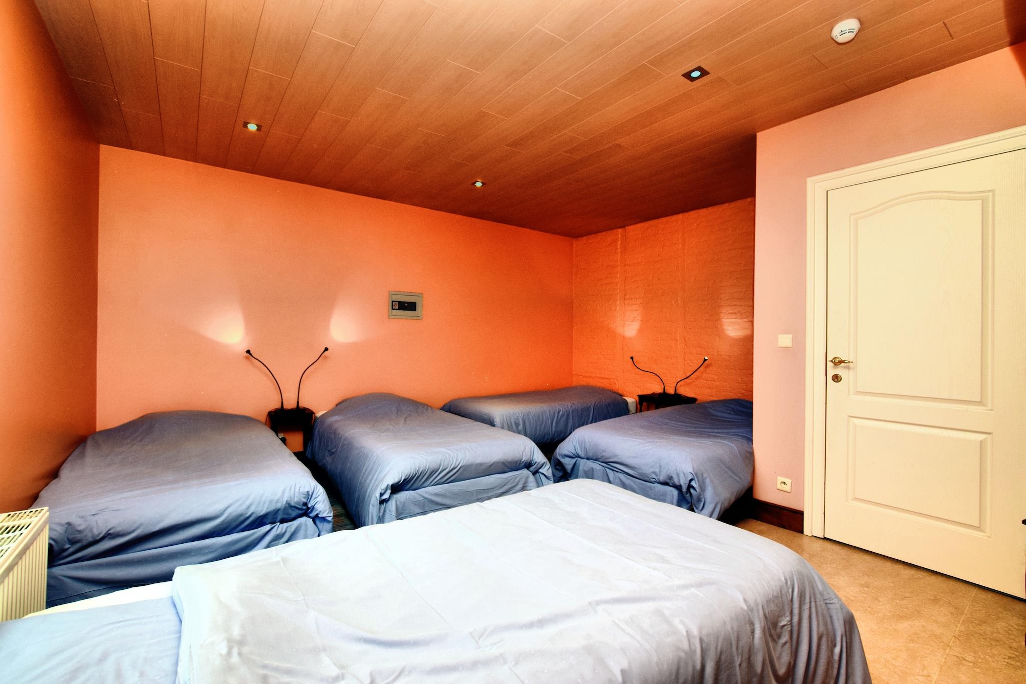 Dette luksuriøse palæ med 10 soveværelser i Mesnil-Saint-Blaise er perfekt til at være vært for store grupper på op til 25 gæster. Uanset om du planlægger en familiesammenkomst, et gensyn med venner eller et professionelt tilbagetog, tilbyder denne elegante ejendom de ideelle rammer. Beliggende i hjertet af landsbyen, kun 1 km fra byens centrum og vigtige butikker, med charmerende restauranter en kort køretur væk. Palæet kan prale af et fantastisk, autentisk ydre og et smukt bevaret interiør, der afspejler fortidens charme. Med to hyggelige stuer, en rummelig spiseplads og en separat spisestue med tv, er der masser af plads til, at alle kan samles eller finde privatliv. Udenfor tilbyder den ekspansive have en unik oplevelse, hvor hjorte strejfer frit, hvilket bidrager til den fredelige, landlige stemning. Ejendommens højdepunkt er dets splinternye wellness-område med en privat opvarmet indendørs swimmingpool, sauna og infrarød sauna. Uanset om du nyder et varmt bad om vinteren, mens du ser på den snedækkede have eller køler af om sommeren efter solbadning, sikrer dette rum afslapning hele året rundt. Et virkelig mindeværdigt ophold venter i dette rummelige og stilfulde Ardennerne-retræte.