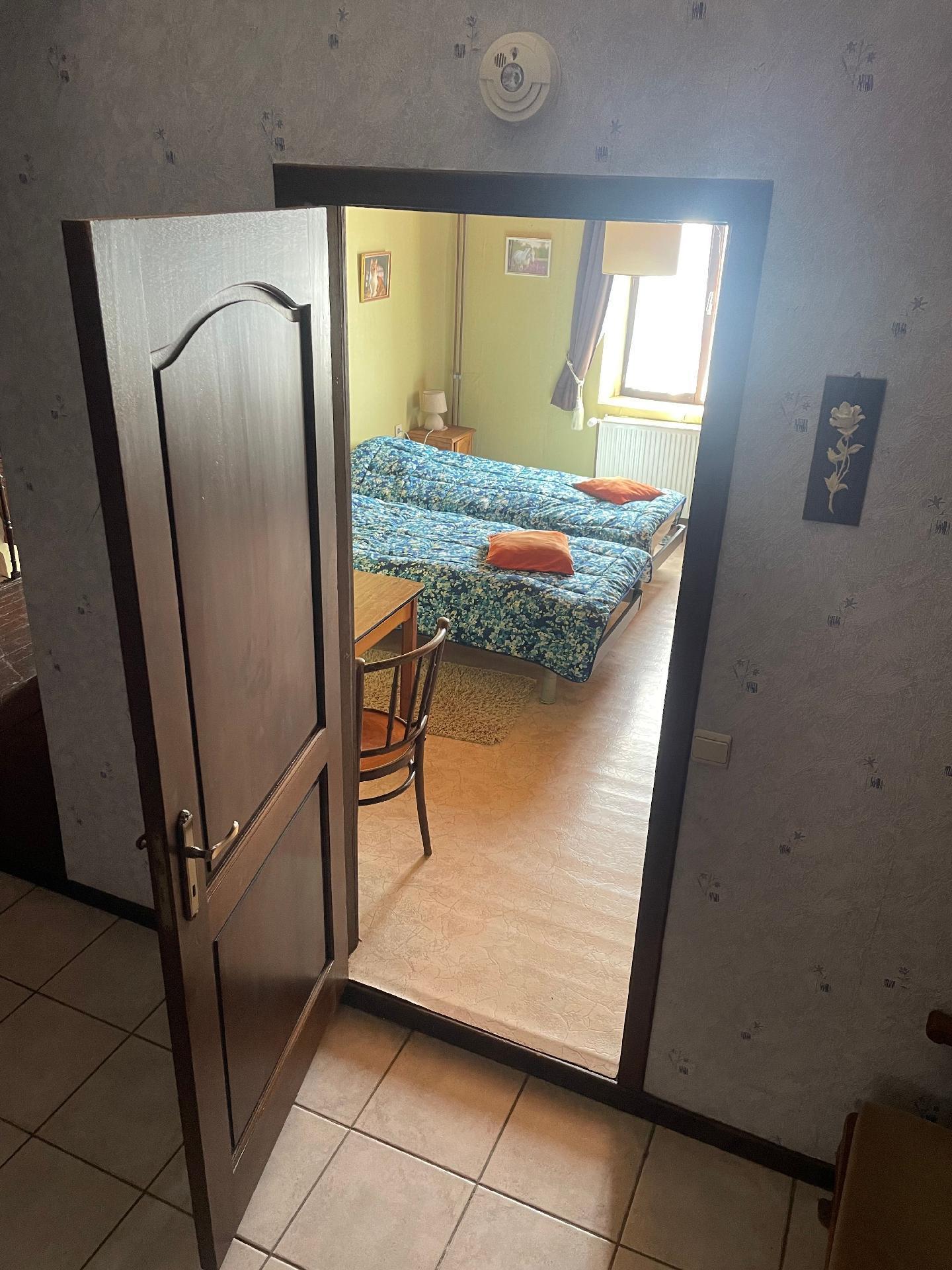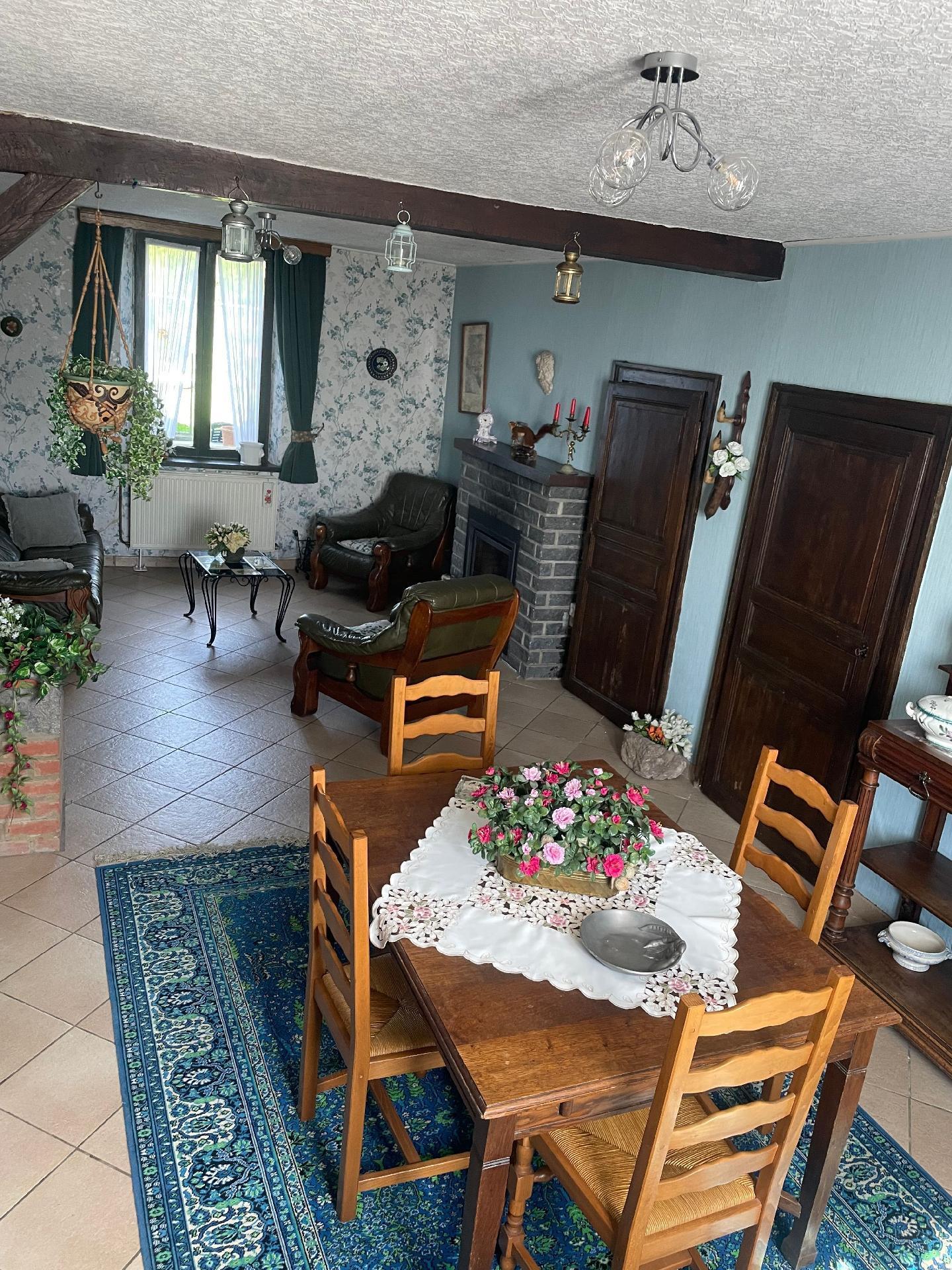 The semi-detached house is on the outskirts of a little village, in a quiet location on a cul-de-sac, surrounded by fields and forests and not far from the beautiful valleys of the Meuse and the Lesse.