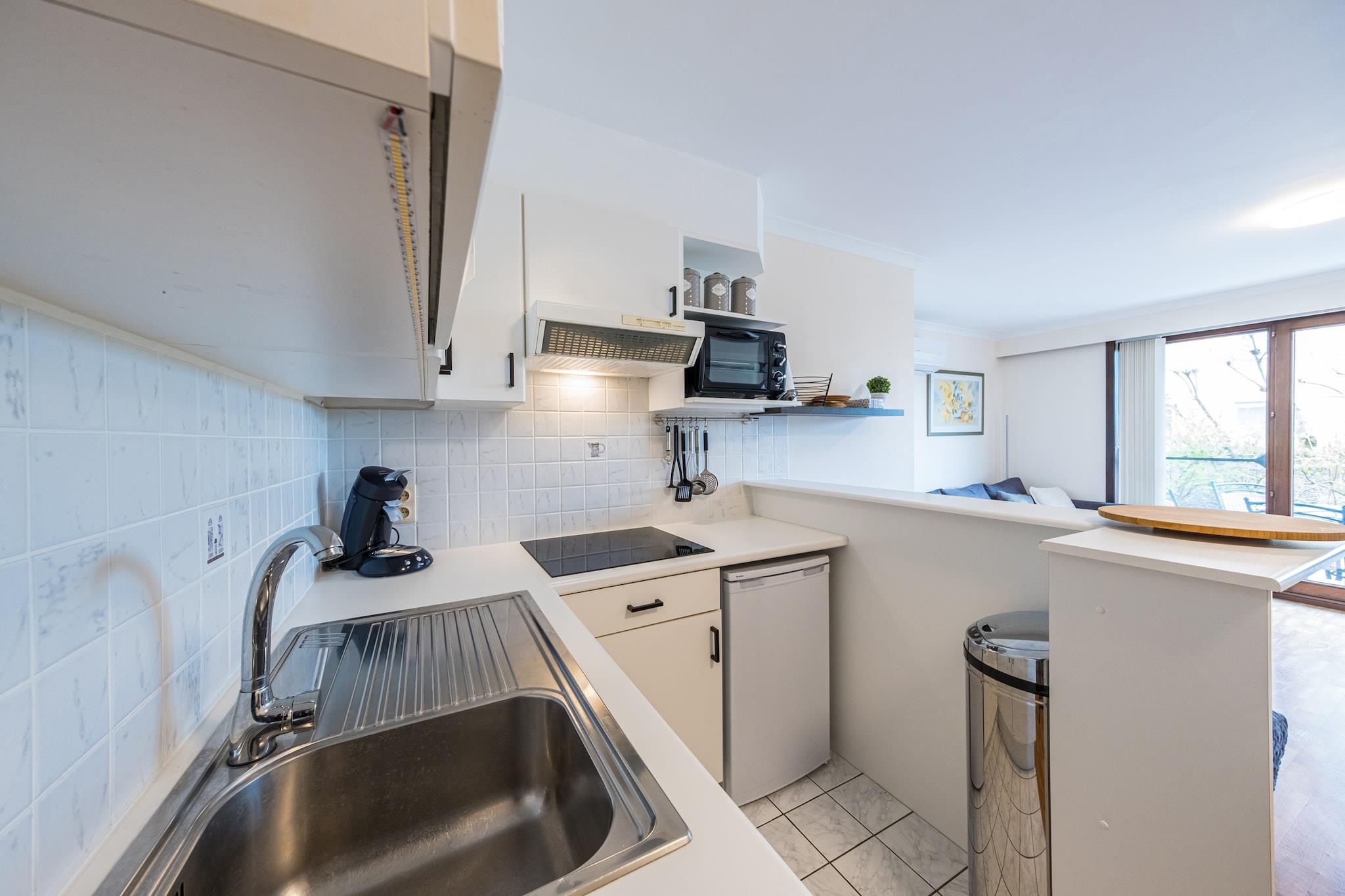 Beliggende i den fredelige Green Garden-residens på Westendelaan 100, tilbyder denne lejlighed i stueetagen i Middelkerke en komfortabel kystflugt for op til 4 gæster. Stuen har en dobbelt sovesofa, tv og spiseplads, mens det separate soveværelse har en dobbeltseng - ideel til par eller små familier. En privat terrasse inviterer dig til at slappe af udendørs efter en dag med udforskning. Det kompakte køkken er udstyret med kaffemaskine, mikroovn og køleskab med fryser, hvilket gør det nemt at tilberede enkle måltider. Lejligheden har også et moderne badeværelse med bruser, et separat gæstetoilet og adgang til en fælles swimmingpool - perfekt til solrige eftermiddage. Yderligere faciliteter såsom et cykelrum, elevator og parkering på stedet bidrager til bekvemmeligheden. Med Nieuwpoort kun 9 km væk og attraktioner som Plopsaland (30 km) og Brugge (40 km) inden for rækkevidde, er denne lejlighed en god base for både stranddage og kulturelle udflugter. Uanset om du er her for en weekend eller et længere ophold, vil du nyde de afslappede omgivelser og nem adgang til Vestflanderns højdepunkter.