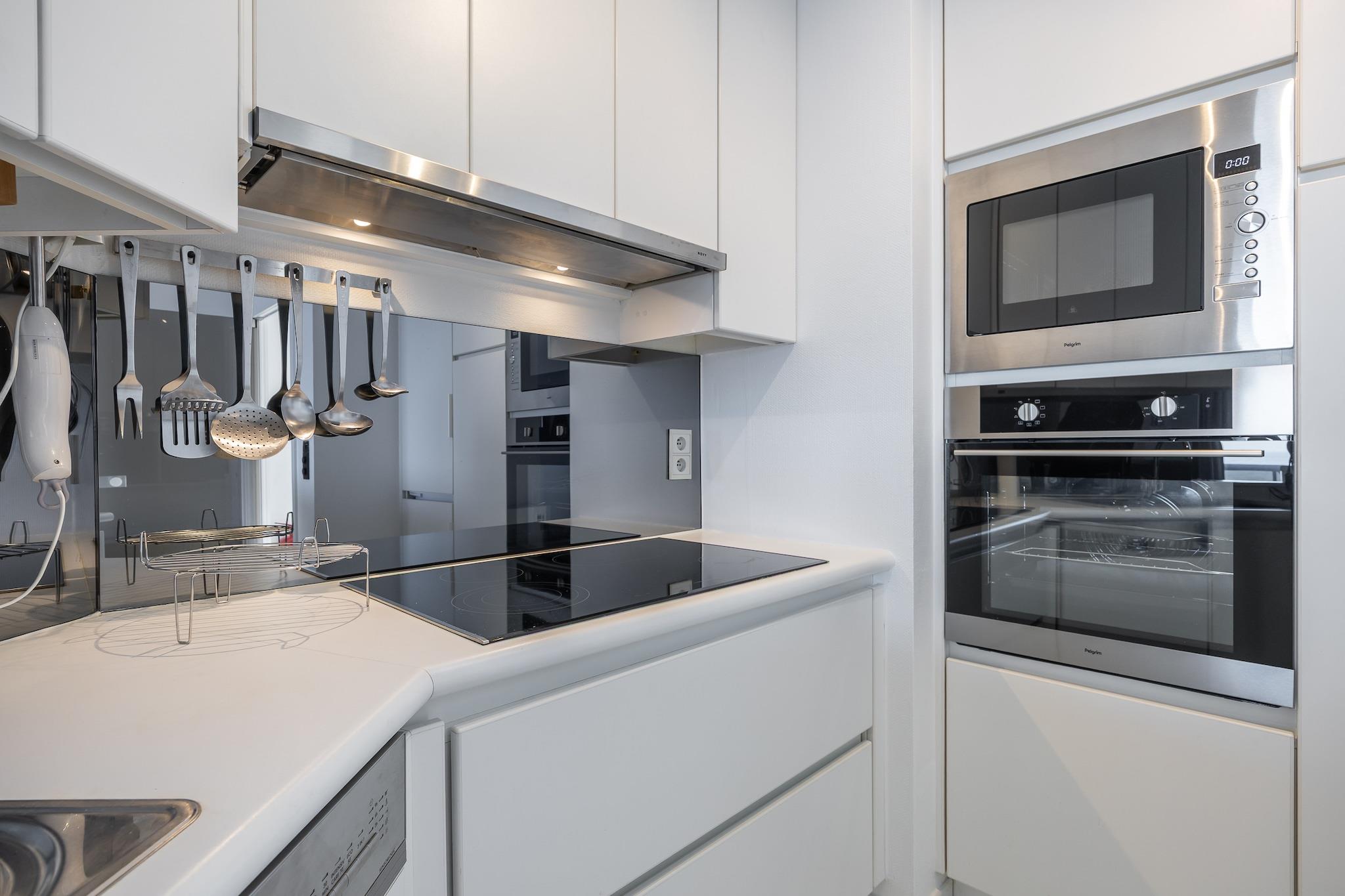 På 7. etage: (åbent køkken(elkedel, brødrister, kaffemaskine, ovn, mikrobølgeovn, opvaskemaskine , køleskab, fryser, , ), stue / spisestue(dobbeltsovesofa(dobbelt dynebetræk, 160 x 190 cm), Fjernsyn, spisebord, sofahjørne, radio), soveværelse(enkeltseng(dynebetræk, 90 x 200 cm), enkeltseng(dynebetræk, 90 x 200 cm)), soveværelse(enkeltseng(dynebetræk, 90 x 200 cm), enkeltseng(dynebetræk, 90 x 200 cm)), badeværelse(bruser, håndvask), badeværelse(bruser, håndvask), toilet(toilet)) garage, Internetadgang, terrasse, cykelopbevaring, elevator, strygebræt, strygejern, tørreskab