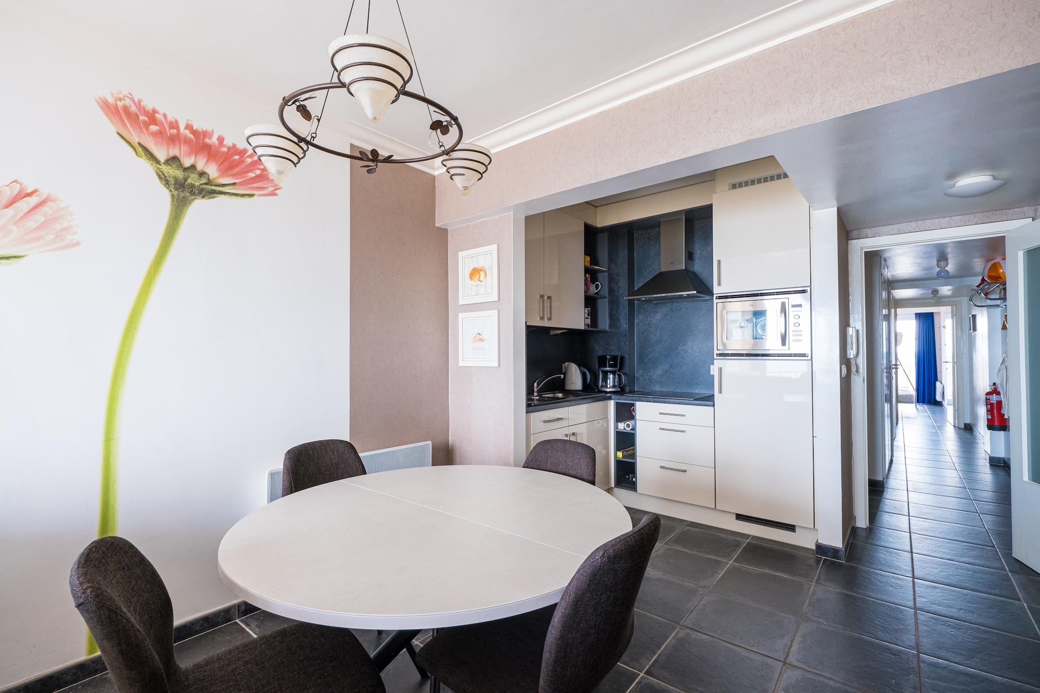 Denne lyse og hyggelige lejlighed på Zeedijk 105 ligger på 7. etage og byder på en betagende havudsigt gennem gulv til loft-vinduer. Med to soveværelser - et med en dobbeltseng og et andet med en unik køjeseng til tre - plus en komfortabel stue og åbent køkken, er det ideelt for familier eller små grupper, der søger et tilflugtssted ved havet. Lejligheden indeholder et moderne badeværelse med bruser, et separat gæstetoilet og en ekstra håndvask i et af soveværelserne for ekstra bekvemmelighed. En solvendt terrasse på bagsiden inviterer dig til at slappe af med to liggestole, en parasol og en forrude. Til de mindste er der en høj stol og ammemadras. WiFi sikrer, at du forbliver forbundet under hele dit ophold. Centralt beliggende nær Casino Square, lejligheden ligger i gåafstand fra butikker og offentlig transport. Med Nieuwpoort (9 km), Plopsaland (30 km) og Brugge (40 km) i nærheden, er dette den perfekte base for at udforske Vestflandern, mens du nyder komforten og charmen ved kystlivet.