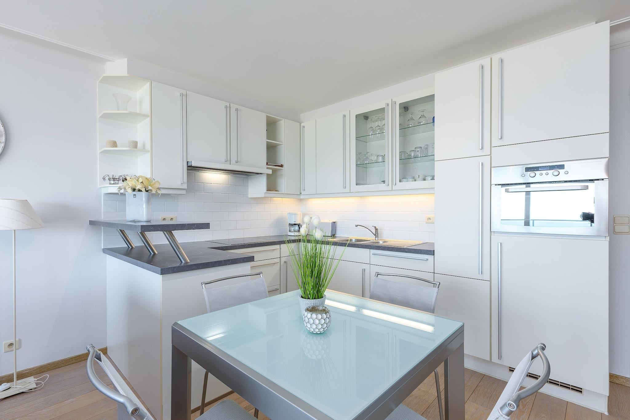 På 4. etage: (åbent køkken(brødrister, kaffemaskine, ovn, combi-mikroovn, mikrobølgeovn, opvaskemaskine , køle-fryseskab, Blender, , ), stue / spisestue(Fjernsyn(digital), spisebord, sofahjørne), soveværelse(dobbelt-foldeseng(dobbelt dynebetræk, 140 x 190 cm)), badeværelse(badekar med bruser, håndvask, toilet), pulterkammer) Internetadgang, terrasse, parkering, swimmingpool(deles med andre gæster), elevator, barnestol