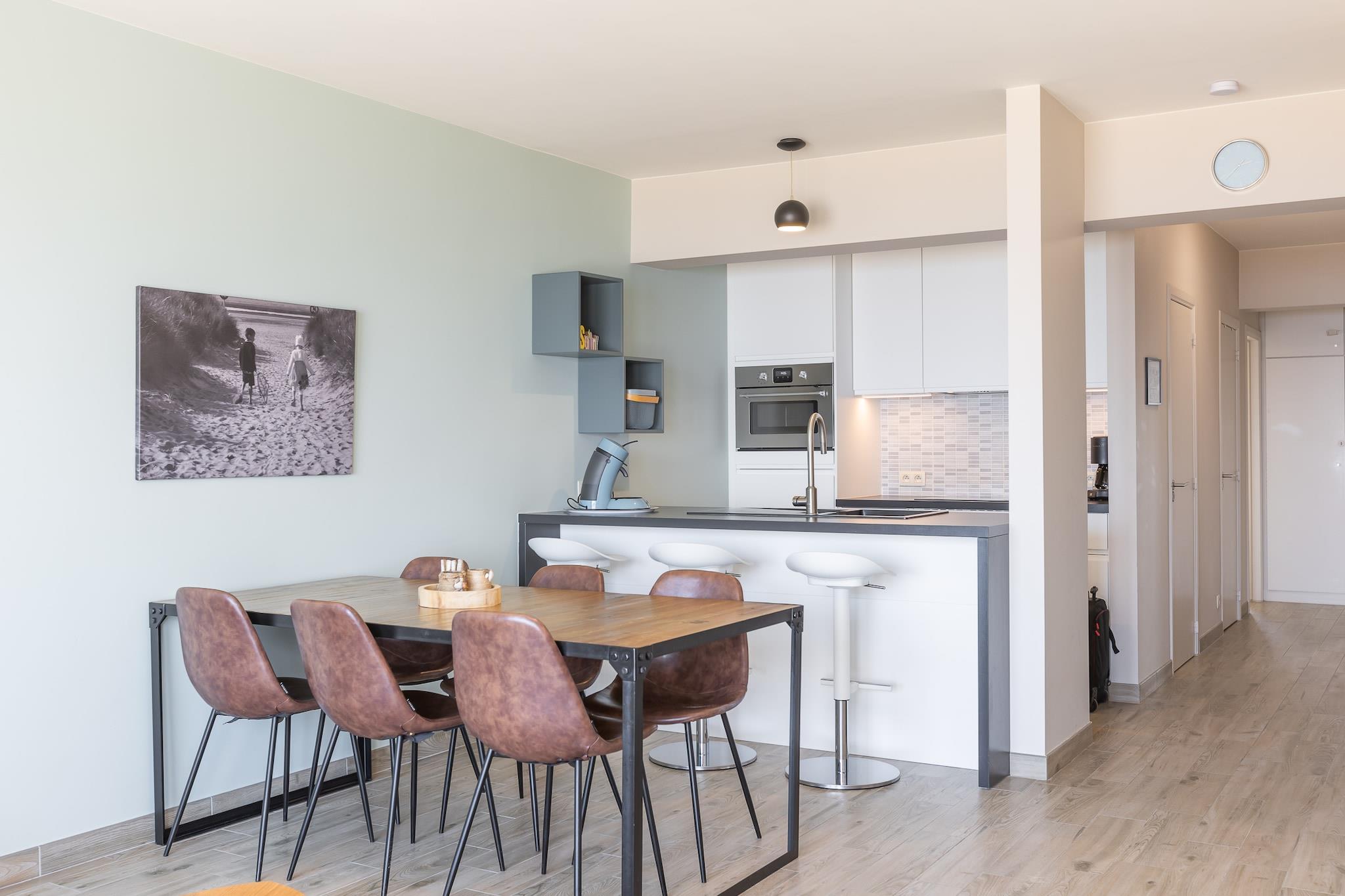 Beliggende kun få skridt fra havet på Zeedijk 269, 8430 Middelkerke, er denne lejlighed i stueetagen perfekt til familier eller grupper på op til 7 gæster. Den lyse stue har en dobbelt sovesofa, tv, spiseplads og en hyggelig siddeplads, ideel til at slappe af efter en dag på stranden. En privat terrasse og elevator tilføjer komforten og bekvemmeligheden. Lejligheden indeholder to soveværelser: et med en dobbeltseng og et andet med en enkeltseng og en køjeseng, fantastisk til børn eller venner. Det fuldt udstyrede køkken omfatter kaffemaskine, juicer, ovn, mikroovn, opvaskemaskine og køleskab med fryser, hvilket gør det nemt at tilberede måltider derhjemme. Badeværelset har bruser, og der er et separat gæstetoilet for ekstra lethed. Yderligere faciliteter omfatter vaskemaskine, tørretumbler og radio. Med sin førsteklasses beliggenhed tæt på promenaden, butikker og offentlig transport tilbyder denne lejlighed en afslappet og praktisk base for din kystferie i Vestflandern.