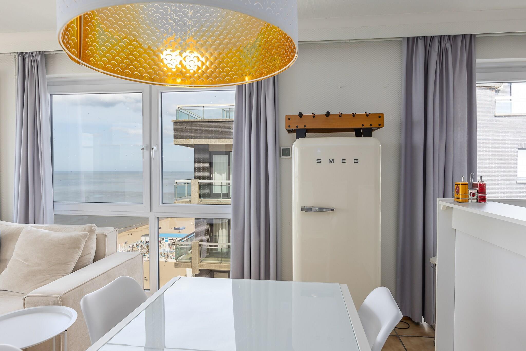 Oplev en fantastisk havudsigt fra denne charmerende hjørnelejlighed på 9. sal i Middelkerke. Badet i naturligt lys takket være store gulv-til-loft-vinduer tilbyder denne etværelseslejlighed en åben og luftig atmosfære hele dagen. De store vinduer åbner direkte ud til en privat terrasse, hvilket giver det perfekte sted at slappe af, nyde havbrisen og nyde det betagende kystlandskab. Indenfor har stuen en udtræksseng til en ekstra gæst, hvilket gør den alsidig til både par og små grupper. Det åbne, fuldt udstyrede køkken gør madlavning til en fornøjelse, mens badeværelset med badekar og bruser tilbyder komfort og bekvemmelighed. Beliggende i en førsteklasses beliggenhed, er denne lejlighed kun en kort gåtur fra Middelkerkes livlige strande og promenade, hvor du kan solbade, slentre langs kysten eller spise på caféer ved havet. Området er godt forbundet med offentlig transport, hvilket gør det nemt at udforske nærliggende attraktioner eller besøge de charmerende byer Westende eller Oostende. Uanset om du søger en afslappende strandferie eller en base for at udforske den belgiske kyst, kombinerer denne lejlighed plads, lys og spektakulær havudsigt i bekvemme omgivelser. Bemærk venligst, at parkering ikke er inkluderet, og gæsterne skal medbringe deres egne lagner og håndklæder. Gratis Wi-Fi sikrer, at du forbliver forbundet under dit ophold. Med sin uovertrufne beliggenhed og panoramaudsigt over havet er denne lejlighed perfekt til dem, der elsker lys, rummelig indkvartering med en fantastisk udsigt. Den tilbyder et ideelt tilflugtssted for en mindeværdig kystferie på den belgiske kyst.