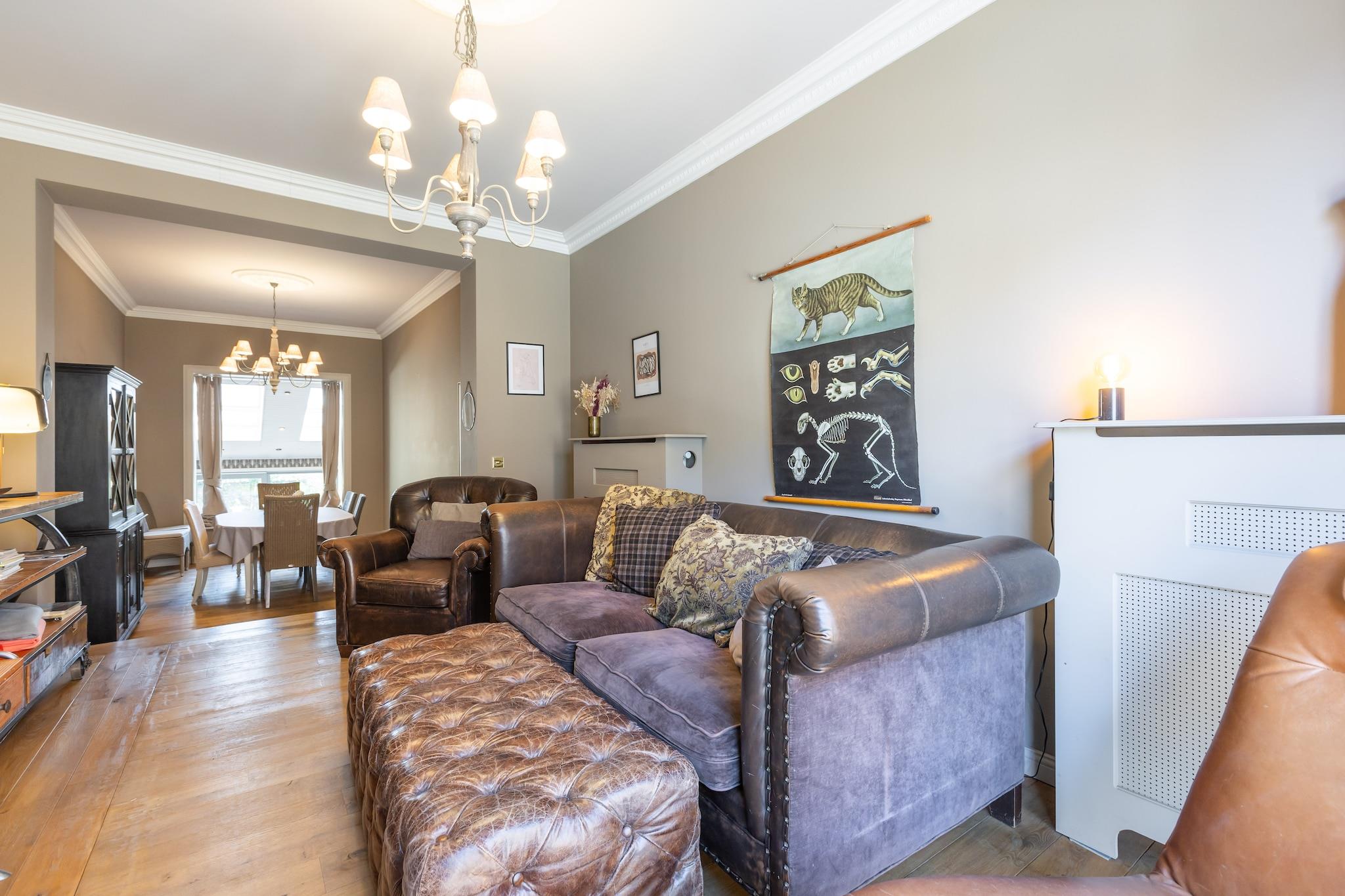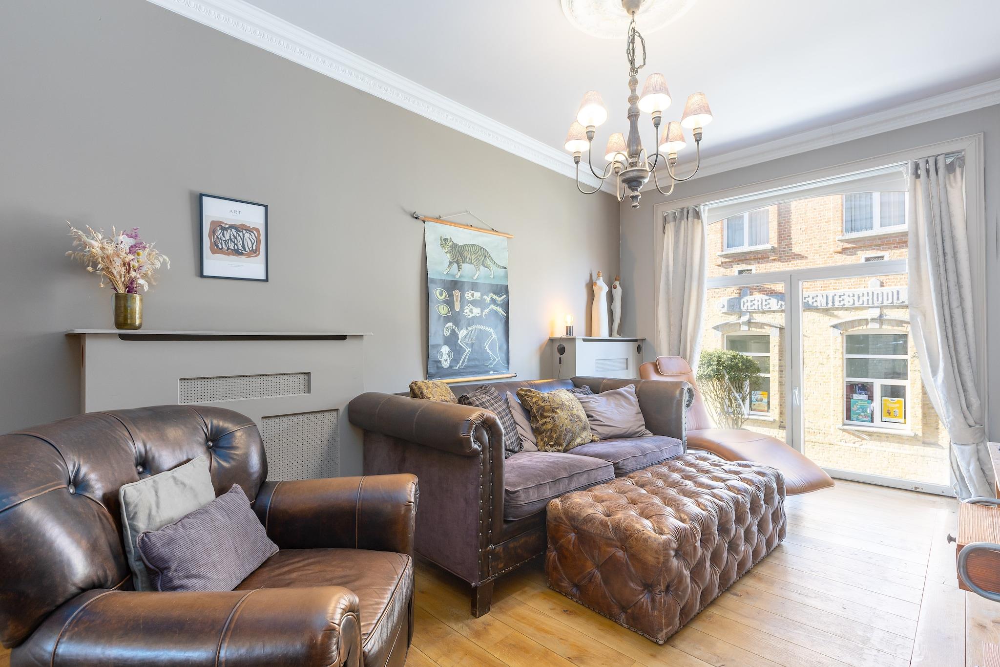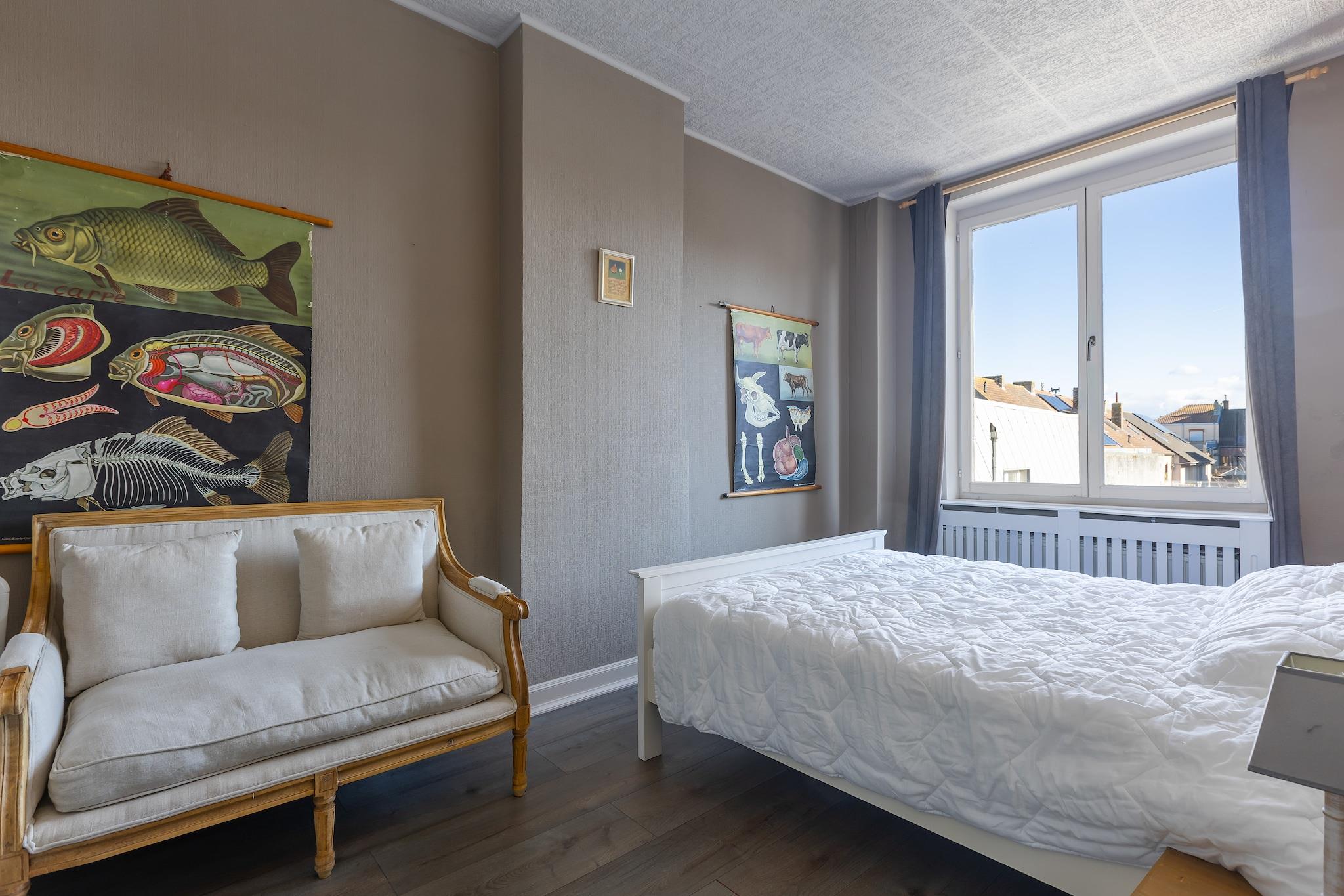 Dette smukke og rummelige palæ er perfekt beliggende mellem Normand Park og stranden i Middelkerke og tilbyder den ideelle beliggenhed for en afslappende kystferie. Inden for gåafstand af butikker, restauranter og lokale attraktioner kombinerer det bekvemmelighed med en rolig atmosfære. Indenfor flyder en hyggelig stue over i en indbydende spisestue, mens det lyse og praktiske køkken er fuldt udstyret og tilbyder udsigt over den solrige, lukkede have. I vintermånederne sørger en pilleovn for ekstra varme i køkkenet (piller skal medbringes af gæsterne). Den private have tilbyder et fredeligt tilflugtssted med en møbleret terrasse og en grill, perfekt til udendørs spisning og rolige eftermiddage. Sovepladserne er fordelt på flere niveauer og er kun tilgængelige via trapper. På anden sal finder du et soveværelse med en dobbeltseng og udsigt over haven samt en babyseng. Et andet soveværelse på samme etage har en dobbeltseng, en enkeltseng og en ekstra udtræksseng - ideelt for familier eller grupper. For dem, der søger lidt eventyr, er der på loftet et ekstra soveværelse med to separate barnesenge, der er tilgængelige via en udklappelig loftstige (bemærk: intet gelænder, ikke egnet til alle). Badeværelset, også på anden sal, har et fritstående badekar, bruser og toilet, med to ekstra separate toiletter tilgængelige i huset. Oversvømmet med naturligt lys og omhyggeligt møbleret, tilbyder dette hjem masser af plads og alle de nødvendige faciliteter til et behageligt og afslappende ophold. Yderligere faciliteter inkluderer Wi-Fi, mens parkering ikke er inkluderet. Medbring venligst dit eget sengelinned og håndklæder. Uanset om du tilbringer dage på stranden, udforsker Middelkerke eller blot slapper af i haven, er dette charmerende hjem den perfekte base for dit ophold.