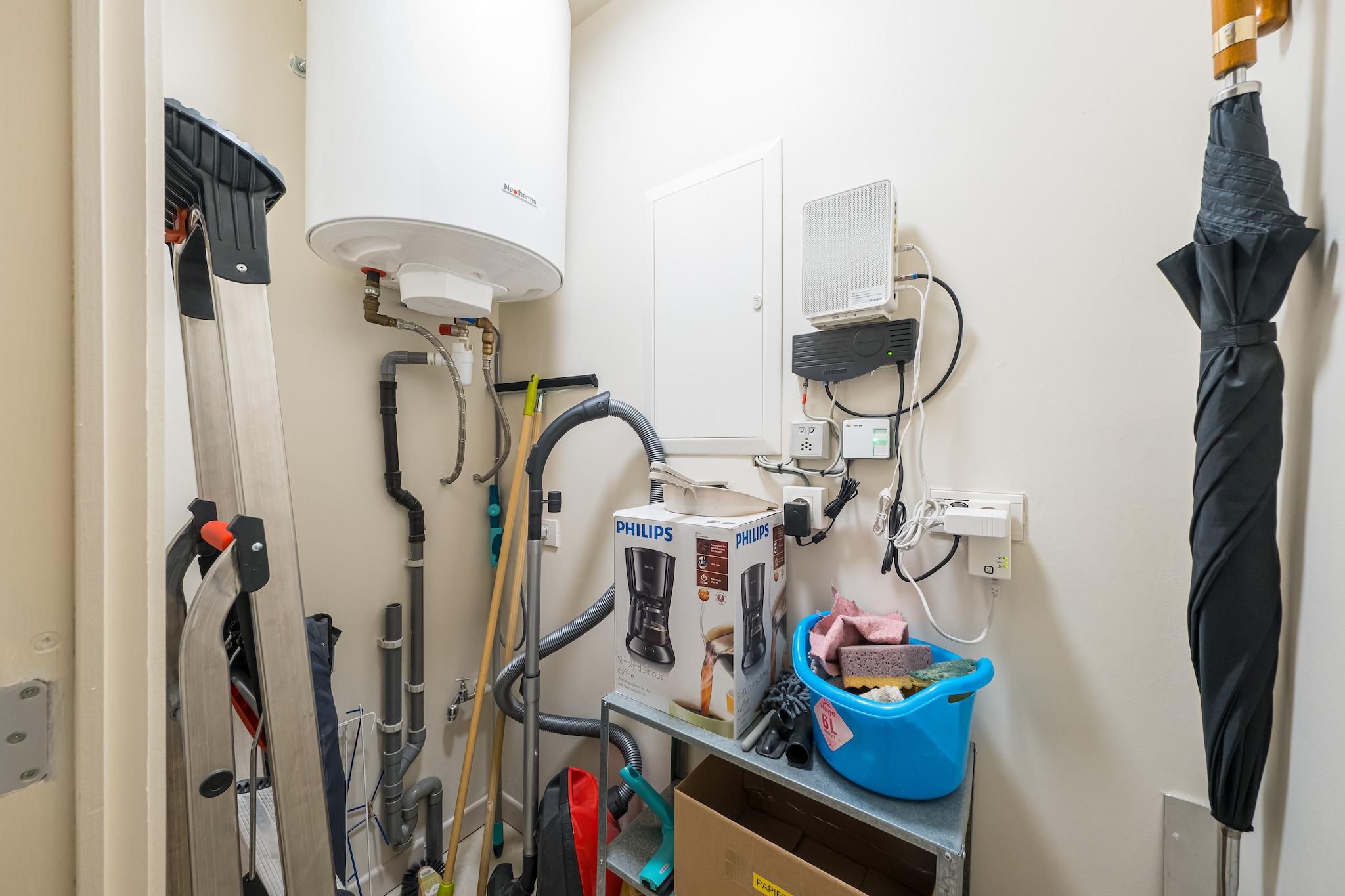 Stueetage: (Stue(Fjernsyn, spisebord, sofahjørne), Køkken(elkedel, kaffemaskine, ovn, mikrobølgeovn, opvaskemaskine , køleskab(+ fryser), Saftpresser), soveværelse(dobbeltseng(dobbelt dynebetræk, 160 x 200 cm)), soveværelse(køjeseng(dynebetræk, 90 x 200 cm)), badeværelse(bruser, føntørrer), toilet(guest toilet), bicycle room, pulterkammer, Internetadgang, terrasse, parkering, elevator)