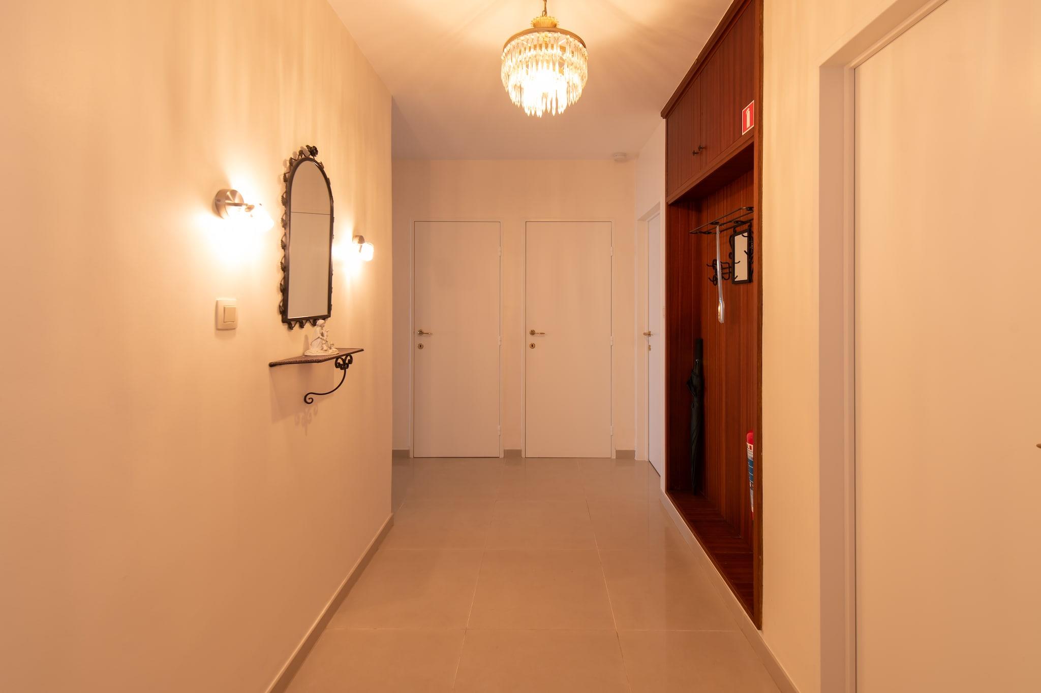 Denne rummelige lejlighed, beliggende ved Middelkerkes havmur, tilbyder et komfortabelt og indbydende tilflugtssted for op til 8 gæster. Ejendommen har en hyggelig stue med en fantastisk udsigt over stranden og kasinoet, hvilket gør det til et perfekt sted at slappe af. Lejligheden har tre veludstyrede soveværelser, alle udstyret med komfortable senge til en god nattesøvn. Du vil også nyde moderne bekvemmeligheder såsom Wi-Fi, digital-tv, kaffemaskine og et fuldt udstyret køkken med ovn, mikrobølgeovn og køleskab. Lejligheden er ikke kæledyrsvenlig, hvilket sikrer et fredeligt og rent miljø for alle gæster. Lejligheden har en førsteklasses beliggenhed og giver nem adgang til nærliggende attraktioner, herunder den smukke strand, kasinoet og de pulserende lokale markeder. Du kan udforske de charmerende caféer og butikker langs kysten eller tage en afslappet cykeltur, da ejendommen har et cykelskur for din bekvemmelighed. Uanset om du slentrer ned ad promenaden eller nyder den travle atmosfære i Middelkerke, finder du masser af muligheder for underholdning og spisning kun få skridt fra lejligheden. Ud over det primære opholdsområde tilbyder lejligheden gennemtænkte funktioner som et separat toilet, et badeværelse med badekar og bruseniche. Køkkenet er fuldt udstyret med alle de nødvendige faciliteter, herunder en opvaskemaskine for nemheds skyld.