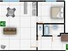 På 6. etage: (åbent køkken(elkedel, brødrister, kaffemaskine(kaffepude), ovn, køle-fryseskab, Blender), stue / spisestue(dobbeltsovesofa(160 x 200 cm), Fjernsyn(digital), spisebord, sofahjørne, DVD-afspiller), soveværelse(dobbeltseng(dobbelt dynebetræk, 140 x 200 cm)), badeværelse(babybadekar, bruser, håndvask), toilet(toilet)) Indgang (), vaskemaskine, varme, barnestol
