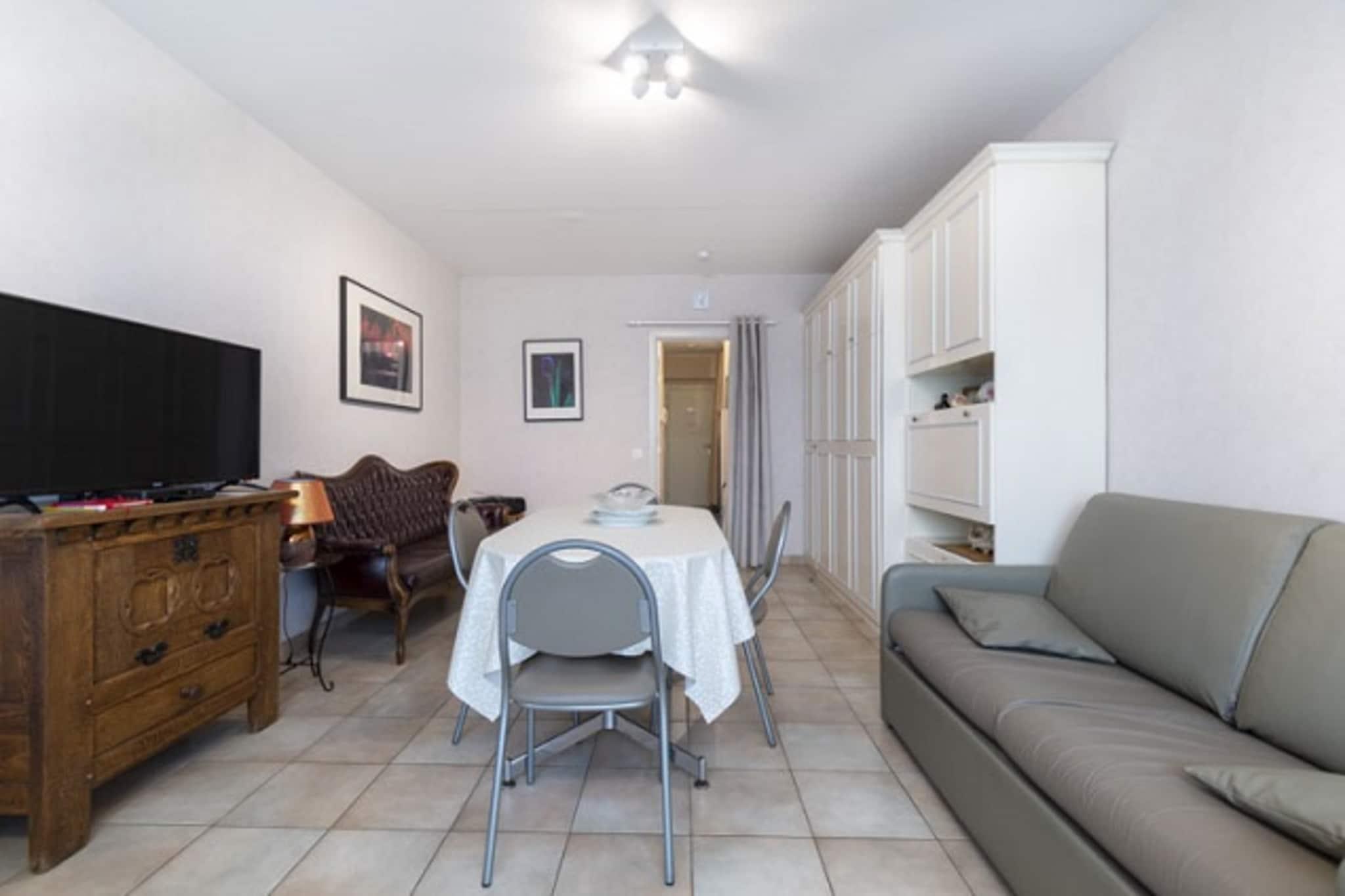 Dette hyggelige studie, der ligger på anden sal, tilbyder et komfortabelt ophold med soveplads til op til 4 personer. Det har en stue med spiseplads, et siddeområde og en skabsseng for ekstra bekvemmelighed. Studiet har også et køkken og et badeværelse med badekar, hvilket giver et afslappende sted at slappe af efter en dag med sightseeing. Den solrige terrasse giver gæsterne mulighed for at nyde havudsigten, perfekt til at nyde den friske luft og udsigten. Ejendommen er kæledyrsvenlig, så gæsterne kan medbringe deres pelsede venner. Studioet er ideelt beliggende kun få minutter fra centrum, hvilket gør det nemt at udforske området. Med et sporvognsstoppested i nærheden er det nemt at komme til lokale attraktioner, caféer og restauranter, hvilket sikrer, at du har masser at se og lave under dit ophold. Den solrige beliggenhed garanterer også rigeligt naturligt lys hele dagen, hvilket får studiet til at føles varmt og indbydende. Uanset om du ønsker at besøge stranden eller opleve den lokale kultur, er alt inden for rækkevidde. Indvendigt er studiet fuldt udstyret med nødvendige faciliteter, herunder sovesofa, køjeseng, kaffemaskine, Senseo, mikrobølgeovn og elektrisk kogeplade. Badeværelset har bruser og toilet for din bekvemmelighed. Studiet tilbyder også digital-tv og Wi-Fi til underholdning og for at holde dig forbundet. Med elektrisk akkumulerende varme tilbyder dette studie et komfortabelt og praktisk rum til et mindeværdigt ophold.