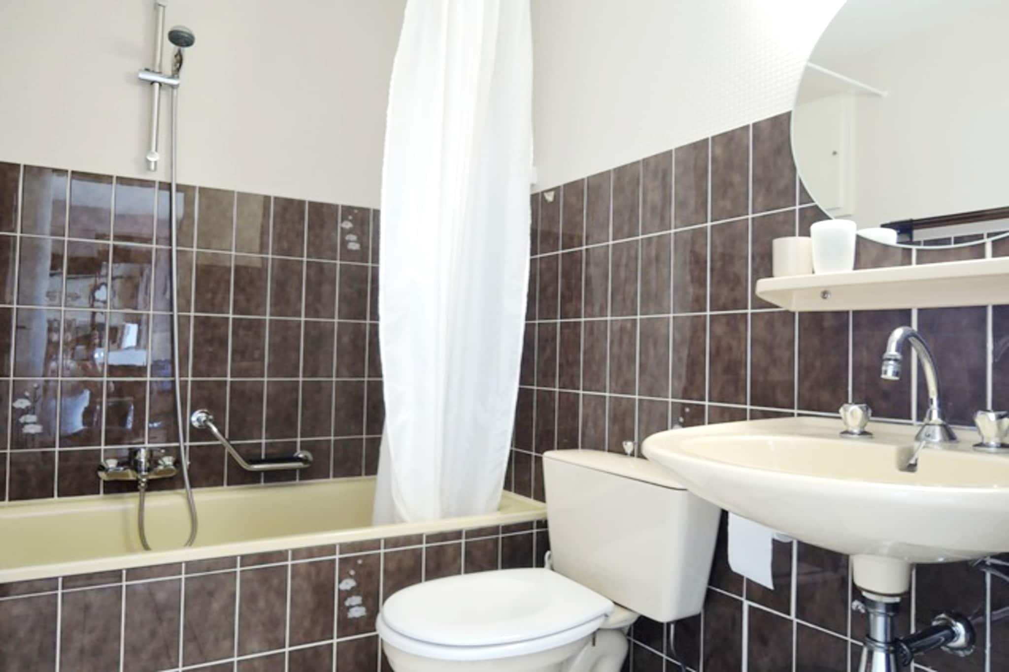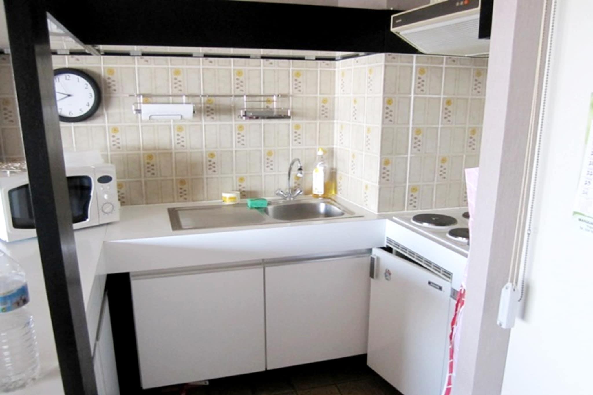 På 4. etage: (Køkken(elkedel, brødrister, mikrobølgeovn, Coffee), stue / spisestue(dobbeltsovesofa(160 x 200 cm), Fjernsyn(digital), spisebord, sofahjørne, radio), soveværelse(dobbelt-foldeseng(dobbelt dynebetræk)), badeværelse(badekar med bruser, håndvask, toilet), Internetadgang) Indgang (), varme(elektrisk), terrasse, føntørrer