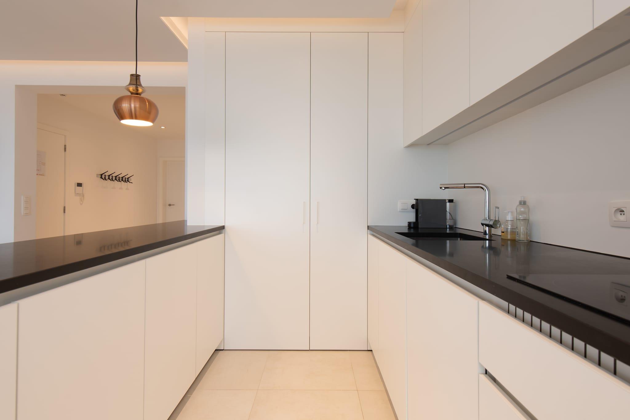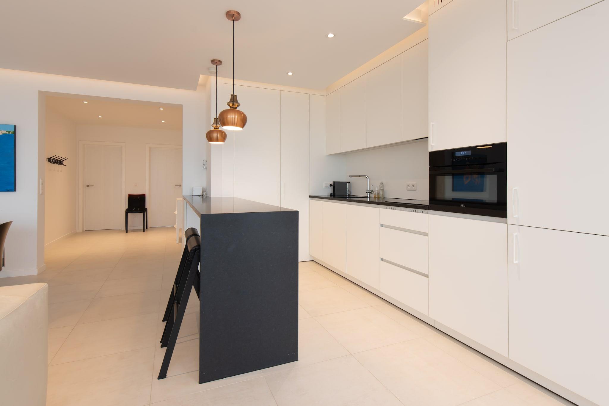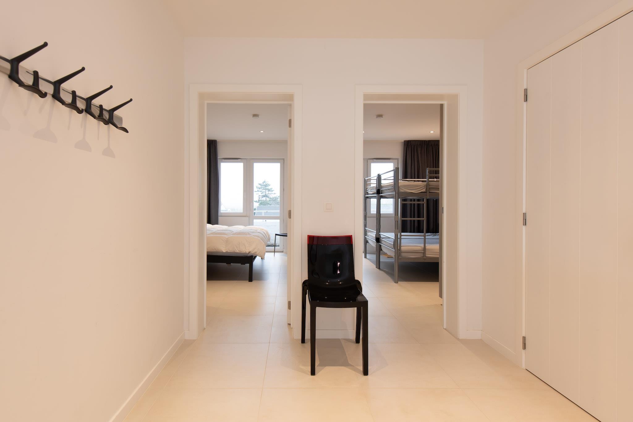 Denne smukt renoverede 2-værelses lejlighed på Zeedijk tilbyder et slankt og moderne design, der giver en fantastisk åben udsigt over havet. Den rummelige stue har et komfortabelt opholdsområde og spiseplads, perfekt til at slappe af eller nyde måltider sammen. Det åbne, fuldt udstyrede køkken tilføjer bekvemmelighed og stil, og sikrer, at du har alt, hvad du behøver til dit ophold. Lejligheden indeholder to soveværelser: det ene med to køjesenge og det andet med en dobbeltseng, der tilbyder sovepladser til op til 6 personer. Det moderne badeværelse er udstyret med brusekabine og håndvask, mens der også er et separat toilet med håndvask for ekstra bekvemmelighed. Den store balkon på bagsiden er et fantastisk sted at nyde frisk luft og slappe af. Yderligere funktioner omfatter laminatparketgulve overalt og moderne bekvemmeligheder såsom kombinationsovn, Nespresso, digital-tv og varme uden Wi-Fi. Lejligheden er ideel til familier eller små grupper, der leder efter en fredelig og velbeliggende ferie, med stranden kun få skridt væk.