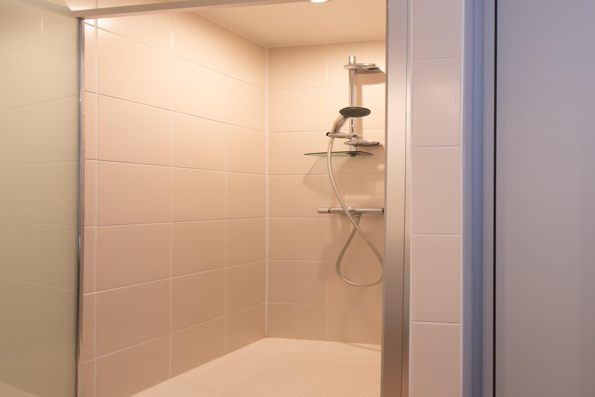 På 4. etage: (åbent køkken(elkedel, brødrister, kaffemaskine(kaffepude), ovn, mikrobølgeovn, opvaskemaskine , køle-fryseskab, Blender), stue / spisestue(Fjernsyn(digital), spisebord, sofahjørne, DVD-afspiller, radio), soveværelse(køjeseng(dynebetræk, 90 x 200 cm)), soveværelse(dobbeltseng(dobbelt dynebetræk, 160 x 200 cm)), soveværelse(enkeltseng(dynebetræk, 90 x 200 cm), enkeltseng(dynebetræk, 90 x 200 cm)), badeværelse(bruser, håndvask, håndvask), toilet(håndvask, toilet), Internetadgang) Indgang (), balkon, varme(elektrisk), terrasse, cykelopbevaring, strygebræt, strygejern, føntørrer