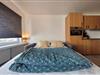 På 5. etage: (åbent køkken(elkedel, brødrister, combi-mikroovn, køle-fryseskab, ), Stue/soveværelse(dobbeltsovesofa, Fjernsyn, spisebord, sofahjørne), badeværelse(bruser, håndvask, toilet, føntørrer)) Internetadgang, tørretumbler, vaskemaskine, varme, elevator