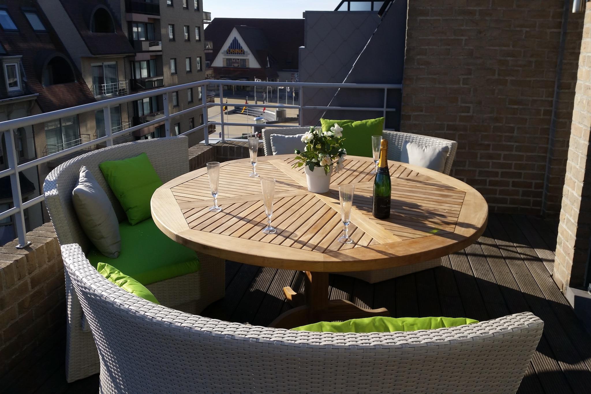 Denne smukke penthouse ligger kun 100 m gang fra Middelkerke strand. Fra de komfortable loungesæder på de 2 rummelige terrasser kan du fuldt ud nyde både morgen- og aftensolen. Boligen er ideel til ferie med familien.Dette feriehus har supermarked, flere brasserier og gode restauranter i gåafstand. Parken ligger 100 m væk, og sporvognsstoppestedet ligger kun 50 m fra huset. I samme afstand ligger den rummelige og prisbillige Normand Parking. Elevatoren fører dig til lejlighedens hall. Gennem den ene dør når man stuen, og gennem den anden dør man til badeværelserne og soveværelserne. Det har et veludstyret køkken med opvaskemaskine, en elektrisk grill og der er vaskemaskine og tørretumbler, så du kan rejse let. Der er også en rejseseng til børn, bagerst i bygningen har du mulighed for at opbevare cykler sikkert.