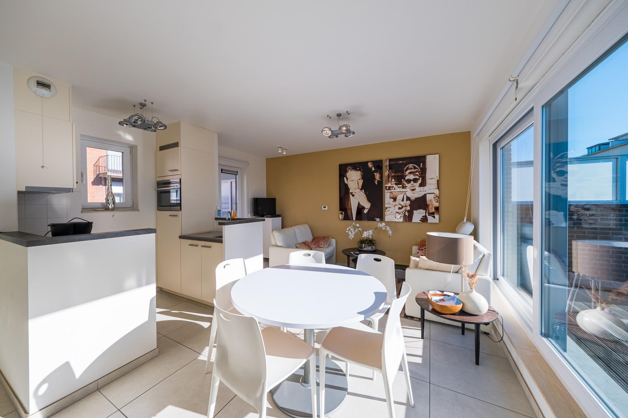 Lyst penthouse, der bor ved havet Forkæl dig selv med en stilfuld kystflugt i denne øverste etage penthouse kun 25 meter fra stranden i Middelkerke. Med 2 soveværelser - det ene med en dobbeltseng og det andet med hyggelige køjesenge - er denne lejlighed ideel til familier eller par, der søger plads, komfort og havluft. Den rummelige opholdsstue flyder ud i et moderne åbent køkken og et renoveret badeværelse med bruseniche. Et separat toilet tilføjer ekstra bekvemmelighed, og Wi-Fi holder dig forbundet under hele dit ophold. Ekspansive terrasser og kystnære bekvemmeligheder Denne penthouse har ikke én, men to generøse terrasser, herunder en solbeskinnet terrasse foran, der strækker sig over hele lejlighedens bredde. Den er perfekt til at nyde din morgenkaffe, dovne morgenmad eller aftenaperitiffer under åben himmel. Beliggende kun få skridt fra sporvognsstoppestedet, har du nem adgang til at udforske nærliggende hotspots som Nieuwpoort (9 km), Plopsaland (30 km) eller de historiske gader i Brugge (40 km). Sportselskere kan spille golf på Westgolf eller besøge Padel Club kun 3 km væk. Spisning og afslapning ved dit dørtrin Fra strandbarer til lokale fiskerestauranter, Middelkerkes livlige spisescene er lige rundt om hjørnet. Nyd friske muslinger, belgiske frites eller et glas vin med havudsigt - mange muligheder er inden for gåafstand. Selvom kæledyr ikke er tilladt, er denne lejlighed perfekt egnet til gæster, der søger et fredeligt, solfyldt tilflugtssted.