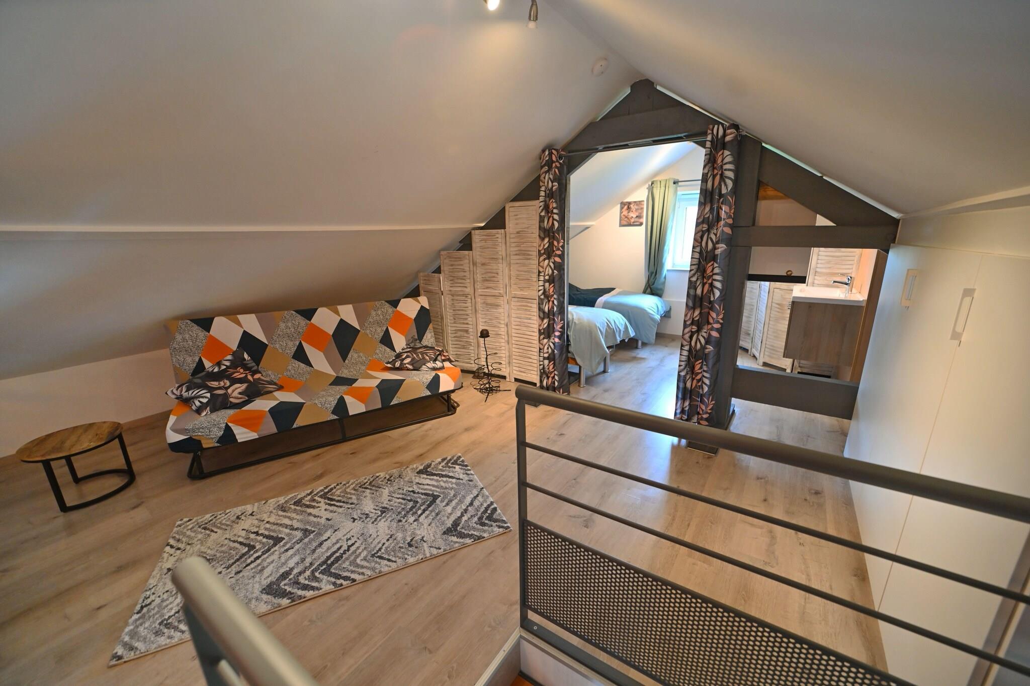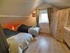 Stueetage: (åbent køkken(komfur(glaskeramisk), kaffemaskine, ovn, køleskab), stue / spisestue(Fjernsyn(digital), spisebord, sofahjørne), Soveværelse med badeværelse(dobbeltseng, bruser, håndvask), toilet) På 1. etage: (åbent rum(2x enkeltseng, sofahjørne, håndvask)) kakkelovn(pille), varme(elektrisk), terrasse, have, havemøbler, grill(elektrisk), parkering