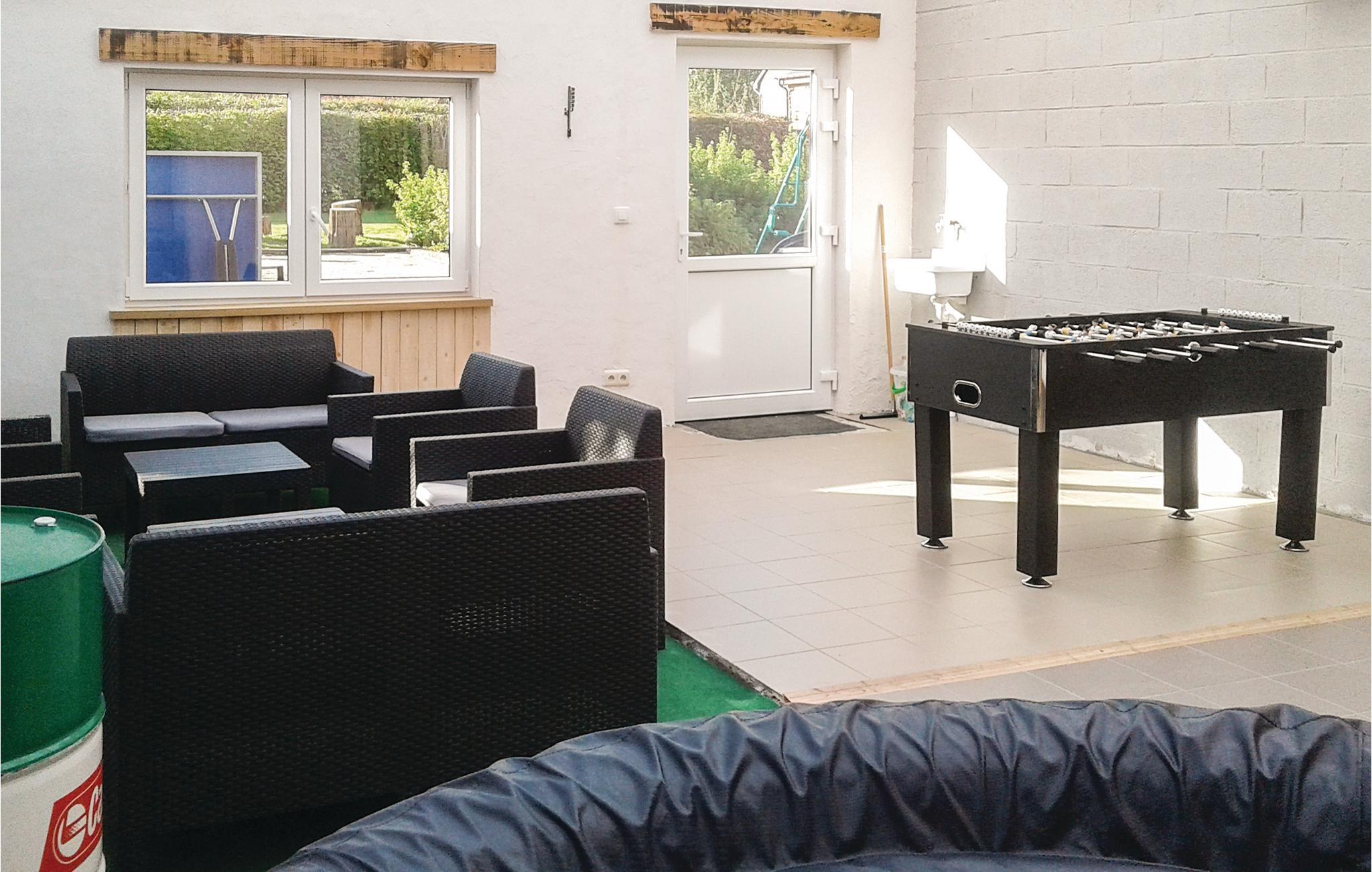 I Nadrin, den største landsby i kommunen Houffalize, ligger dette feriehus på grunden af en renoveret bondegård med egen have på 3000 m². Slap af under frugttræerne i liggestolene. På den beskyttede sydterrasse kan I nyde solen fra begyndelsen af foråret indtil sensommeren. I stueetagen ligger stuen med flere siddemuligheder, et halvåbent, komplet udstyret køkken og en særskilt stue med skydedøre til terrassen. Der er et bryggers med vaskemaskine, tørretumbler og gæstetoilet. På første sal er der fire rummelige og komfortable soveværelser med en køjeseng i det mindste, samt to badeværelser. Der er også tænkt på jeres komfort, hvis I tager små børn med på ferie. Der er tre babysenge, legetøj og haven er komplet indhegnet. Også havelågens gitter er meget tæt. I kan benytte jer af den oppustelige whirlpool i haven mod forespørgsel og gebyr. Igen for de mindste gæsters skyld er den overdækket og sikret med lynlås. Større børn kan spille fodbold og boltre sig af hjertets lyst på den rigelige plads. Der er også en god, trådløs internetforbindelse. I alt er huset en glimrende bolig til en familieferie med børn.