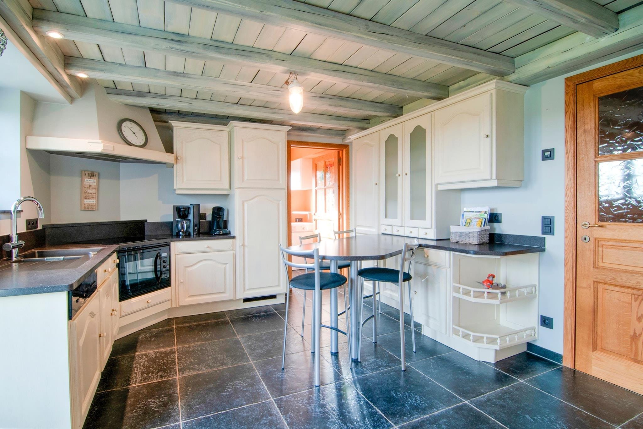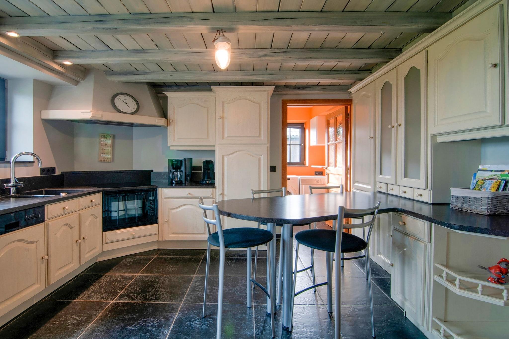 Gemt væk i den fredelige landsby Nafraiture er dette feriehus med 4 soveværelser perfekt til familier eller grupper på op til 8 gæster. Med en frodig have, solrig terrasse og grill er det en vidunderlig base for at genoprette forbindelsen til naturen og skabe varige minder. Kun 300 m fra Nafraiture-skoven og 7 km fra La Semois-floden og Vresse-sur-Semois bymidte er området ideelt til vandreture, cykling og naturskønne picnics. Udforsk lokale butikker, spis på charmerende restauranter, eller nyd bare Ardennernes sindsro. Bruxelles South Charleroi Lufthavn ligger 95 km derfra. Indvendigt har boligen et veludstyret køkken, rummelig opholdsstue og havemøbler til udendørs lounging. Uanset om du stirrer på stjernen på terrassen eller griller under åben himmel, byder dette hjem på et afslappende og naturfyldt tilflugtssted. Parkering er tilgængelig.