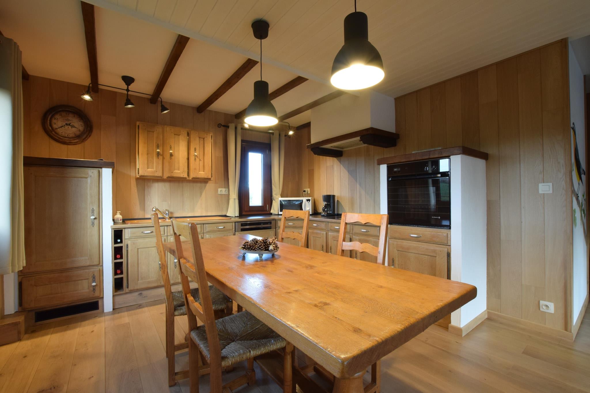 Denne charmerende villa i Sur-Chanty, Nassogne, tilbyder et fredeligt tilflugtssted i hjertet af Ardennerne. Ideel til par eller små familier, kun 2 km fra Forrières og omgivet af frodigt grønt. Regionen er rig på kulturarv og natur med nærliggende attraktioner som Château de Mirwart, de forhistoriske Grottes de Han og det interaktive Euro Space Center. Besøgende kan også udforske det naturskønne La Roche-en-Ardenne og nyde vandre- eller cykelture gennem skovstier. Villaen har to komfortable soveværelser, en hyggelig stue/spisestue med pejs og gaskomfur samt et fuldt udstyret åbent køkken med moderne apparater, herunder kaffemaskine, ovn og opvaskemaskine. Badeværelset har bruser, toilet og hårtørrer, mens yderligere faciliteter som fryser, barneseng, højstol og elektrisk opvarmning sikrer et behageligt ophold. Udendørs kan gæsterne slappe af på terrassen, nyde måltider i haven og benytte grillen og havemøblerne. Spisemuligheder i nærheden omfatter Le Barathym for belgisk og fransk køkken, Le Jardin des Senteurs for moderne smagsoplevelser og Brasserie Saint-Monon for rustikke lokale retter.