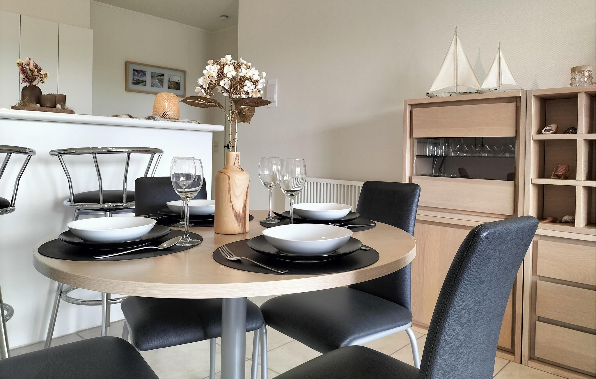 Bare en kort gåtur fra sandstranden byder denne lyse og smagfulde ferielejlighed jer velkommen. Naturlige farver og raffineret indretning skaber en behagelig atmosfære. Nyd harmoniske måltider ved det stilfuldt dækkede spisebord, planlæg jeres aktiviteter i fred og ro, og slap af på den komfortable sofa efter en begivenhedsrig dag.