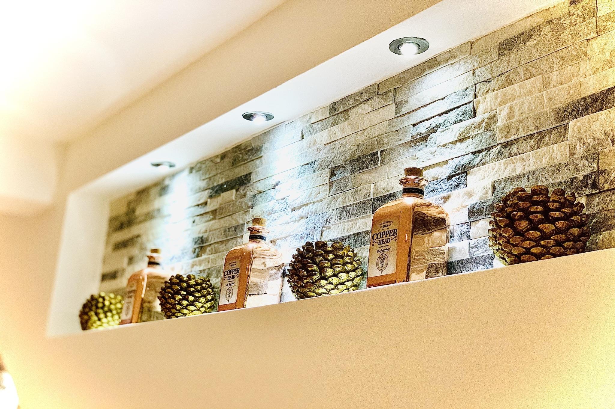 Stueetage: (entre, åbent køkken(bar(spise bar), kogeplade(gas), elkedel, kaffemaskine(kopper, kaffetragt), ovn, mikrobølgeovn, opvaskemaskine , køle-fryseskab, barnestol), stue / spisestue(Fjernsyn(fladskærm, digital, Smart-TV), spisebord, sofahjørne, gaspejs), sanitært rum(tørretumbler, infrarød sauna, toilet, strygebræt, strygejern)) På 1. etage: (soveværelse(køjeseng, barneseng), soveværelse(tilgængelig via et værelse)(dobbeltseng), badeværelse(Bubble bath, massagebruser, håndvask, håndvask, toilet), tagterrasse, havemøbler) På 2. etage: (soveværelse(dobbeltseng), soveværelse(køjeseng))