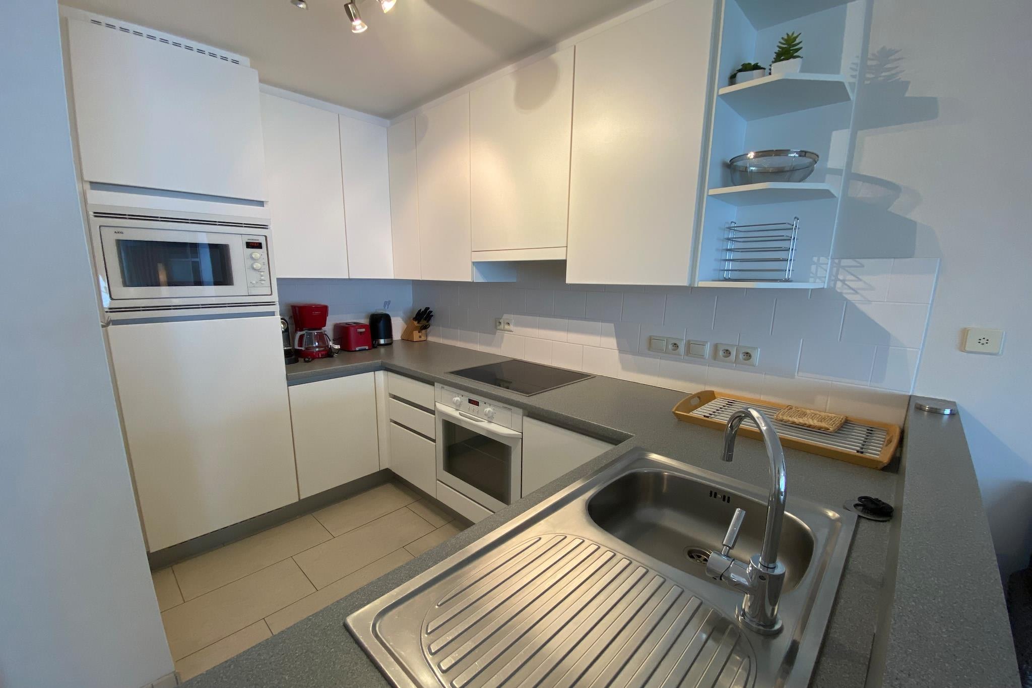 Denne stilfulde 2-værelses lejlighed, centralt beliggende på havnemolen, tilbyder den perfekte blanding af komfort og en fantastisk udsigt over kysten. Nyd en meget rummelig terrasse med havemøbler, der er ideel til at nyde solen eller spise al fresco. Kun få skridt fra sandstrandene er det et fredfyldt fristed for afslapning. Oplev det bedste af Nieuwpoorts charme ved havet i dette veludstyrede fristed, der er perfekt til at slappe af og skabe uforglemmelige minder ved havet. Nieuwpoort er en charmerende kystby, kendt for sine maleriske strande, historiske seværdigheder og livlige atmosfære. Uanset om du ønsker at nyde solen, tage en forfriskende dukkert i Nordsøen eller nyde en afslappet gåtur langs kysten, er Nieuwpoort Strand det perfekte sted for afslapning og rekreation, og den ligger inden for gåafstand. Du kan også udforske den travle marina, hvor farverige sejlbåde og yachter gynger blidt i havnen. Nyd et måltid på en af restauranterne ved vandet, eller nyd blot den maritime atmosfære. Udforsk det maleriske landskab omkring Nieuwpoort til fods eller på cykel ad et netværk af velafmærkede stier, der snor sig gennem maleriske landsbyer, frodige marker og fredelige naturreservater.