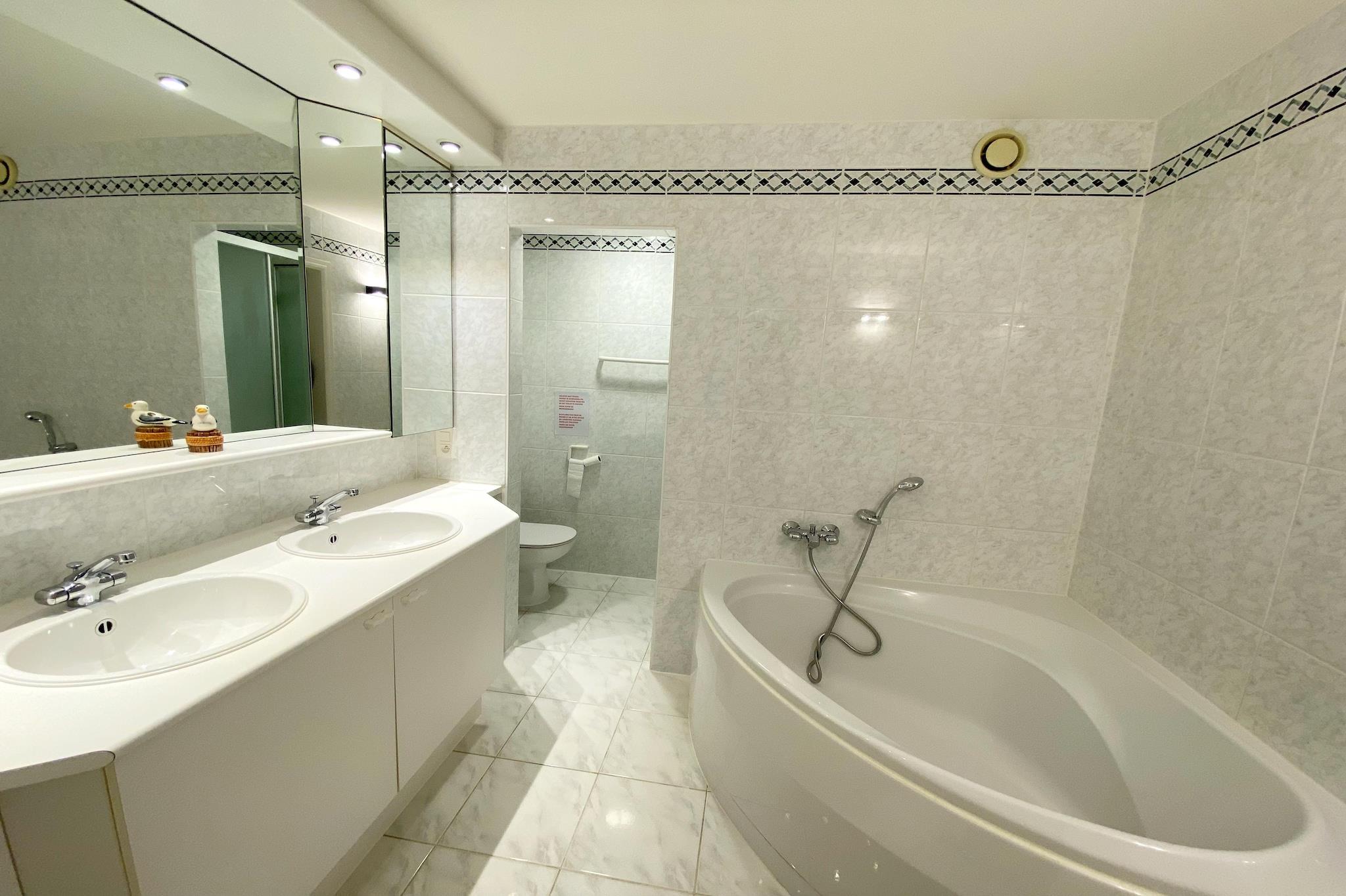 På 5. etage: (åbent køkken(komfur(elektrisk), kaffemaskine, combi-mikroovn, opvaskemaskine , køleskab(+ fryser)), stue / spisestue(Fjernsyn(digital), spisebord, sofahjørne, radio), soveværelse(dobbeltseng(to enkeltdyner, dun, 160 x 200 cm)), soveværelse(enkeltseng(dyne, dun), enkeltseng(dyne, dun)), soveværelse(køjeseng(dyne, dun)), badeværelse(badekar, bruser, håndvask, toilet), badeværelse(bruser, håndvask), toilet(toilet)) garage, vaskemaskine, terrasse, elevator, tørreskab