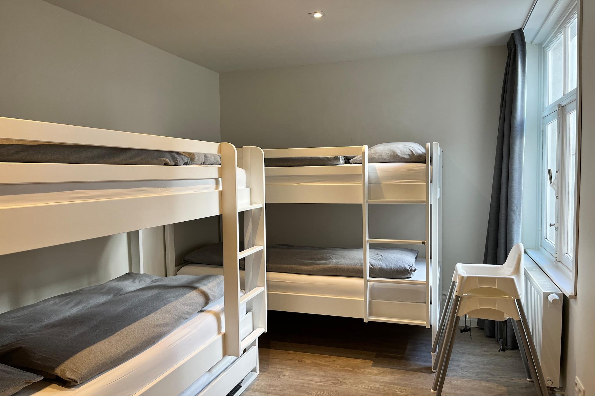 Moderne, børnevenlig ferielejlighed i hjertet af Nieuwpoort-Bad – 4 stjerner Velkommen til denne lyse og moderne ferielejlighed, ideelt beliggende på den travle shoppinggade Nieuwpoort-Bad. Kun få skridt fra havdigen, stranden og offentlig transport kan du nyde en central beliggenhed og alle bekvemmeligheder for et afslappende ophold ved havet. Lejligheden er bedømt med 4 stjerner og har plads til op til 9 personer. Den har tre elegante soveværelser, to moderne badeværelser og en indbydende stue, perfekt til familier eller vennegrupper. Det fuldt udstyrede køkken gør madlavning nemt, og med vaskemaskine og tørretumbler på stedet behøver du ikke bekymre dig om vådt vasketøj eller børnenes tøj. Der er en hårtørrer. Lejligheden er også meget børnevenlig: der er tre babysenge og to højstole til rådighed, så de små kan have ro i sindet. Bemærk venligst: Lejligheden ligger på en øverste etage uden elevator og har ikke privat parkering. Der er dog mulighed for at leje en parkeringsplads inden for få minutters gang, hvilket gør adgangen nem og bekvem. Takket være den ideelle beliggenhed – lige i centrum, kun et stenkast fra stranden og transportforbindelser – er denne lejlighed det perfekte udgangspunkt for en uforglemmelig ferie på den belgiske kyst.
