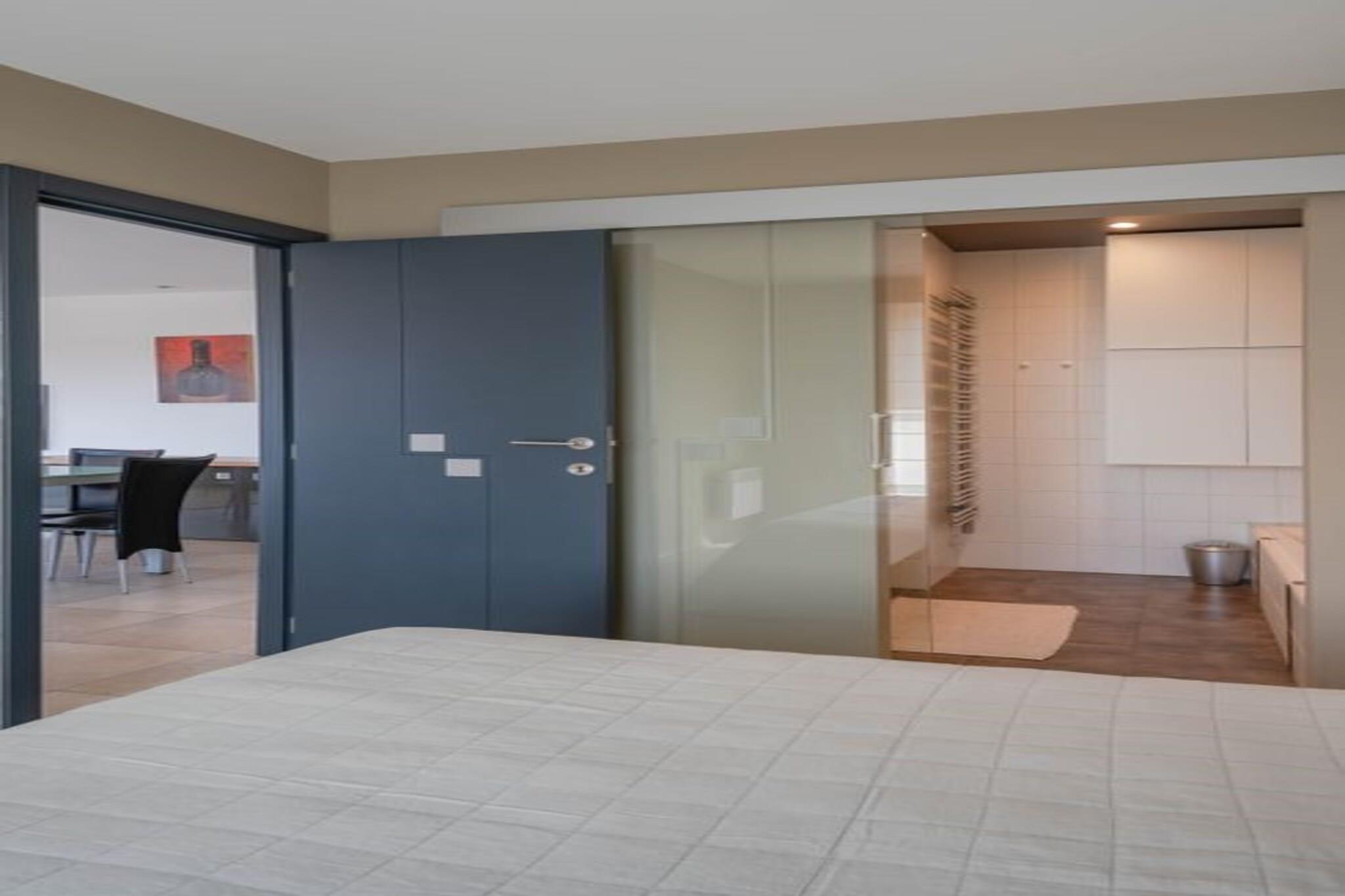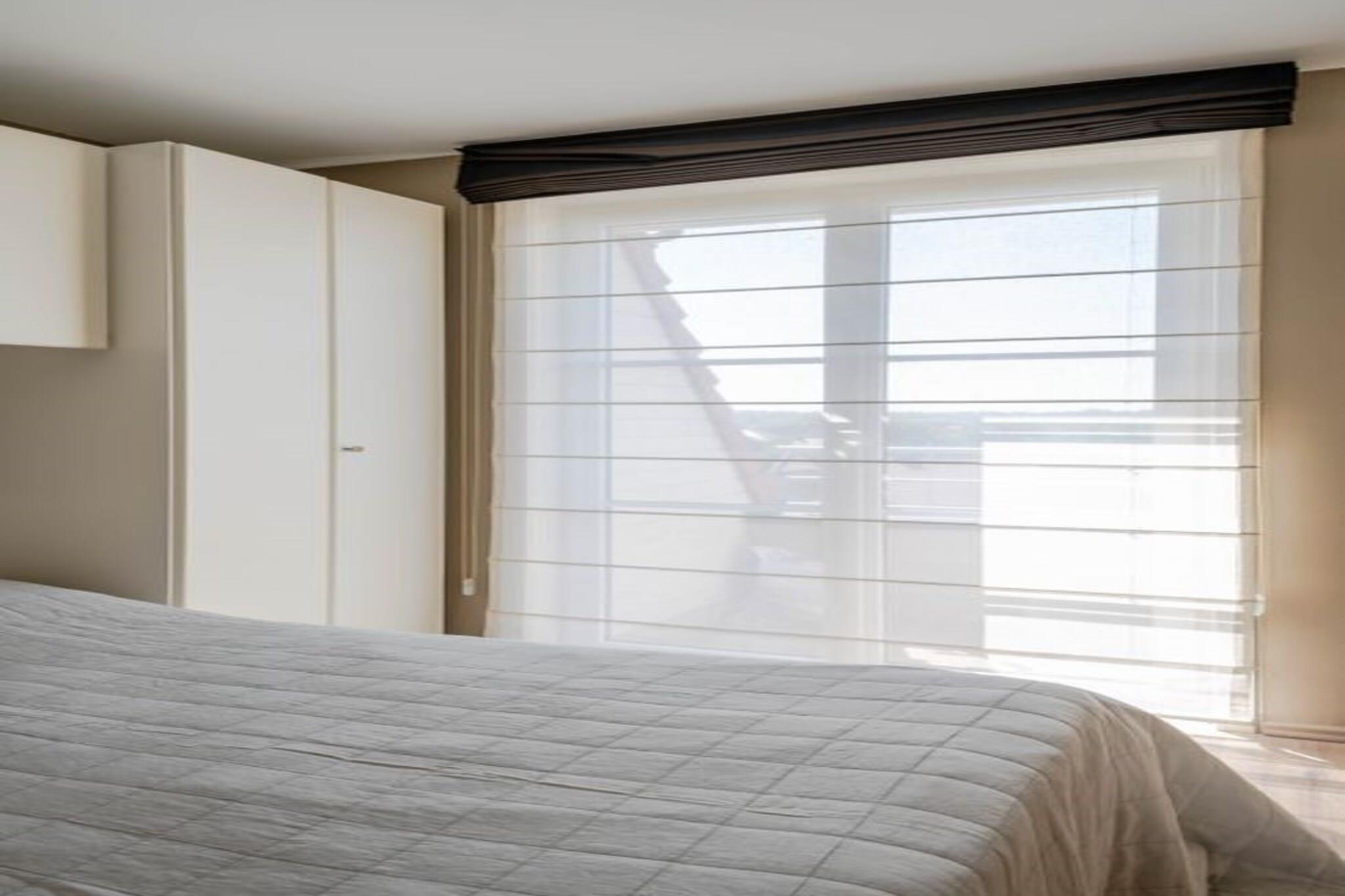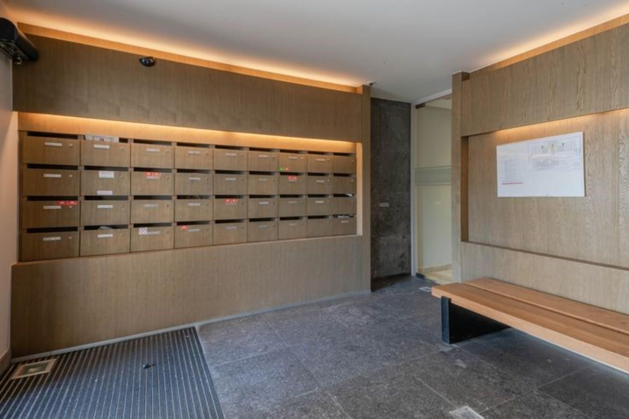 På 5. etage: (åbent køkken(kogeplade(elektrisk), kaffemaskine(kopper, kaffetragt, kaffepude), combi-mikroovn, opvaskemaskine , køle-fryseskab), stue / spisestue(Fjernsyn(digital), spisebord(4 personer), sofahjørne), Soveværelse med badeværelse(dobbeltseng(dobbelt dynebetræk, 160 x 200 cm), badekar med bruser, håndvask), Soveværelse med badeværelse(dobbeltseng(dobbelt dynebetræk), bruser, håndvask), toilet(toilet)) tørretumbler, vaskemaskine, patio, terrasse(balkon eller terrasse), cykelopbevaring(Parkering), elevator, strygebræt, strygejern