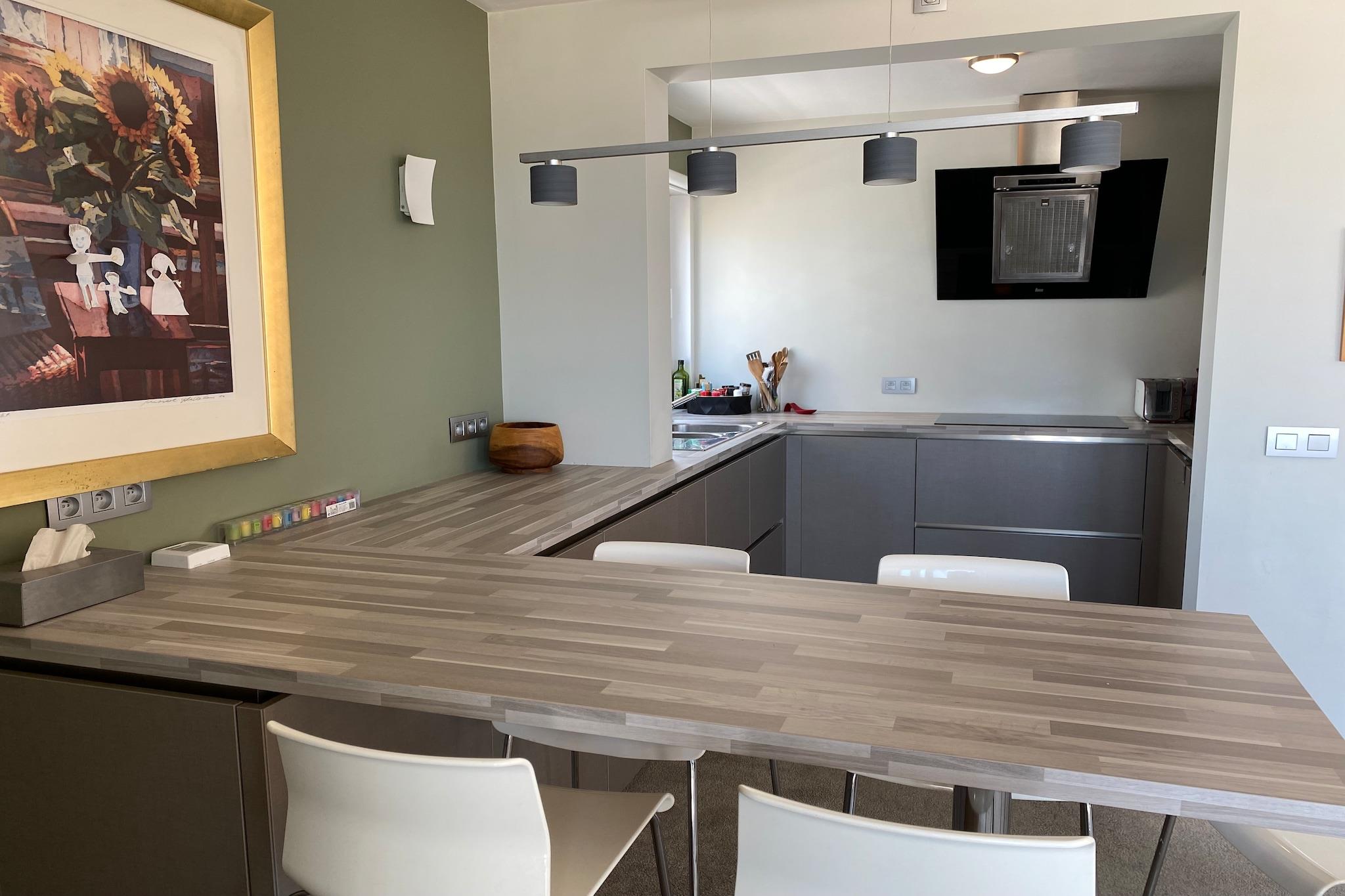Oplev din ubekymrede ferieparadis på den belgiske kyst i denne rummelige og lyse lejlighed i Nieuwpoort-Bad, der tilbyder en betagende udsigt over havet. Dette indbydende tilflugtssted, perfekt til familier eller par, der søger rigelig plads og komfort, er en dejlig base for at opleve kystens charme. Træd indenfor i en generøs opholdsstue, der er blødgjort af hyggelige tæpper, hvilket skaber en varm og hjemlig atmosfære. Lejligheden har tre komfortable soveværelser, der tilbyder fleksible sovemuligheder. Mens det ene soveværelse har et privat fristed med en dobbeltseng, tilbyder to yderligere soveværelser køjesenge, ideelle til børn eller dem, der sætter pris på en åben, fælles atmosfære. Du finder to praktiske brusere, hvoraf det ene er omhyggeligt placeret i nærheden af det kompakte, udstyrede køkken, hvilket sikrer praktisk anvendelighed under dit ophold. Selvom der ikke er en opvaskemaskine, er der en vaskemaskine og tørretumbler til rådighed for din komfort. Nyd kystbrisen fra både for- og bagterrassen, så du kan sole dig når som helst på dagen. Den private garage giver uvurderlig bekvemmelighed, især i højsæsonen. Beliggende i en førsteklasses beliggenhed kun få øjeblikke fra Nieuwpoort-Bads pulserende shoppinggade, finder du alle nødvendige butikker, dejlige restauranter og lokale faciliteter inden for gåafstand. Denne kombination af plads, komfort og en uovertruffen havudsigt gør denne lejlighed til et ideelt valg for en virkelig afslappende kystferie.