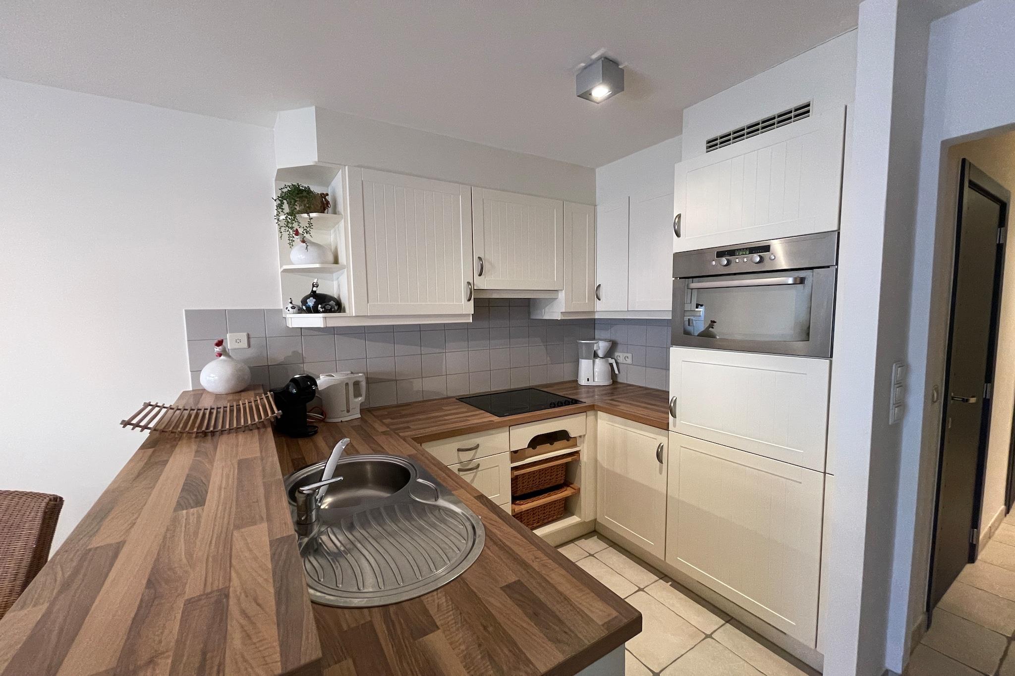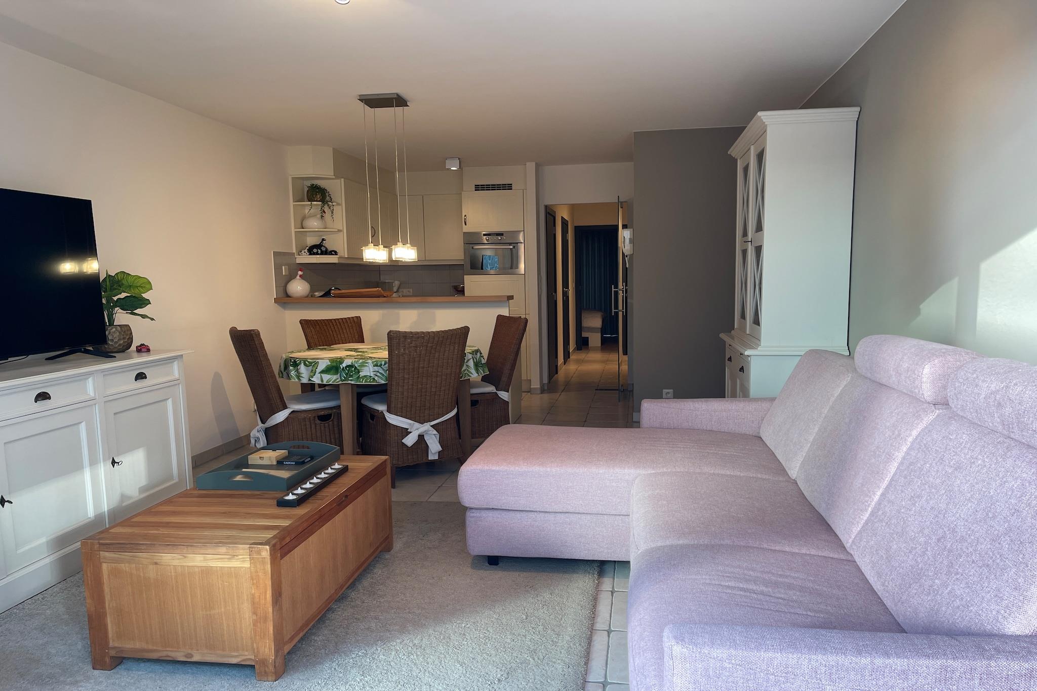 Denne lyse kystlejlighed er et vidunderligt valg til en afslappende ferie ved havet i Nieuwpoort-Bad. Perfekt til par eller små familier, og den tilbyder et komfortabelt tilflugtssted kun få øjeblikke fra stranden og den livlige promenade, hvor kystens rytme sætter tonen for dit ophold. Interiøret er designet til lethed og komfort, med en lys opholdsstue, der inviterer dig til at slappe af efter en dag udendørs. Uanset om du nyder en rolig aften indendørs eller planlægger næste dags eventyr, føles rummet indbydende og praktisk. Det åbne køkken er veludstyret til at tilberede enkle måltider, hvilket giver dig friheden til at spise i dit eget tempo. Soveværelset tilbyder et fredeligt miljø til afslappende nætter, mens badeværelset er pænt færdigt og funktionelt, hvilket sikrer en frisk start og afslappede aftener. Hver detalje er omhyggeligt arrangeret for at skabe et behageligt ophold uden overflod med fokus på komfort og enkelhed. Træd udenfor, og du er straks fordybet i Nieuwpoort-Bads charme. Sandstranden, kyststierne, butikkerne, bagerierne og de indbydende restauranter er alle inden for rækkevidde. Lange gåture langs kysten, cykling langs kysten og spontane caféstop bliver en del af hverdagen her. Denne lejlighed er især attraktiv for gæster, der værdsætter beliggenhed, naturligt lys og en ægte ferieatmosfære. Uanset om du planlægger en romantisk ferie eller en rolig pause ved havet, er dette en indbydende base, hvor kystlivet føles ubesværet og forfriskende afslappet.