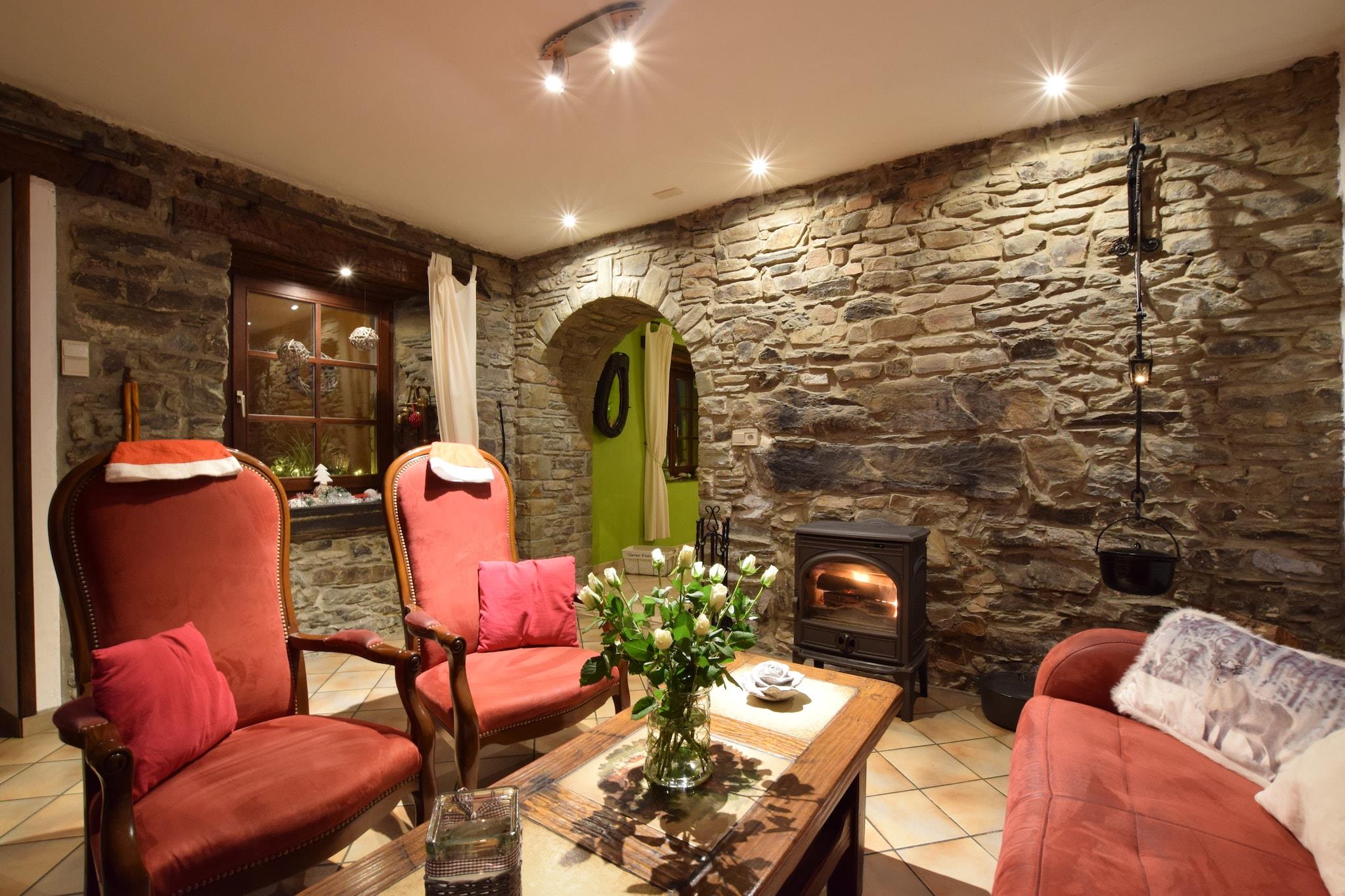 Dette hyggelige 2-værelses feriehus i Rondu (Libramont) ligger i den naturskønne Ardennerne og er perfekt til en familie eller gruppe på 6. Tilbring fredelige aftener på den overdækkede terrasse, komplet med grill og dejlig udsigt. Hjemmet er en ideel base for at nyde naturen, tage på vandreture, cykle, stå på ski, jage eller sejle i kano i området. Det giver også nem adgang til charmerende byer som Arlon, Bouillon og Virton, hver med rig historie og lokal kultur. Indvendigt holder centralvarme boligen varm året rundt. Det veludstyrede køkken har filterkaffemaskine og ovn, så du nemt kan tilberede måltider. En privat indhegnet have med udendørs møbler inviterer dig til at spise udendørs i den friske luft. Familier med børn er velkomne, huset har en børneseng og høj stol. Et kæledyr er tilladt, så din lodne ledsager ikke behøver at gå glip af noget.