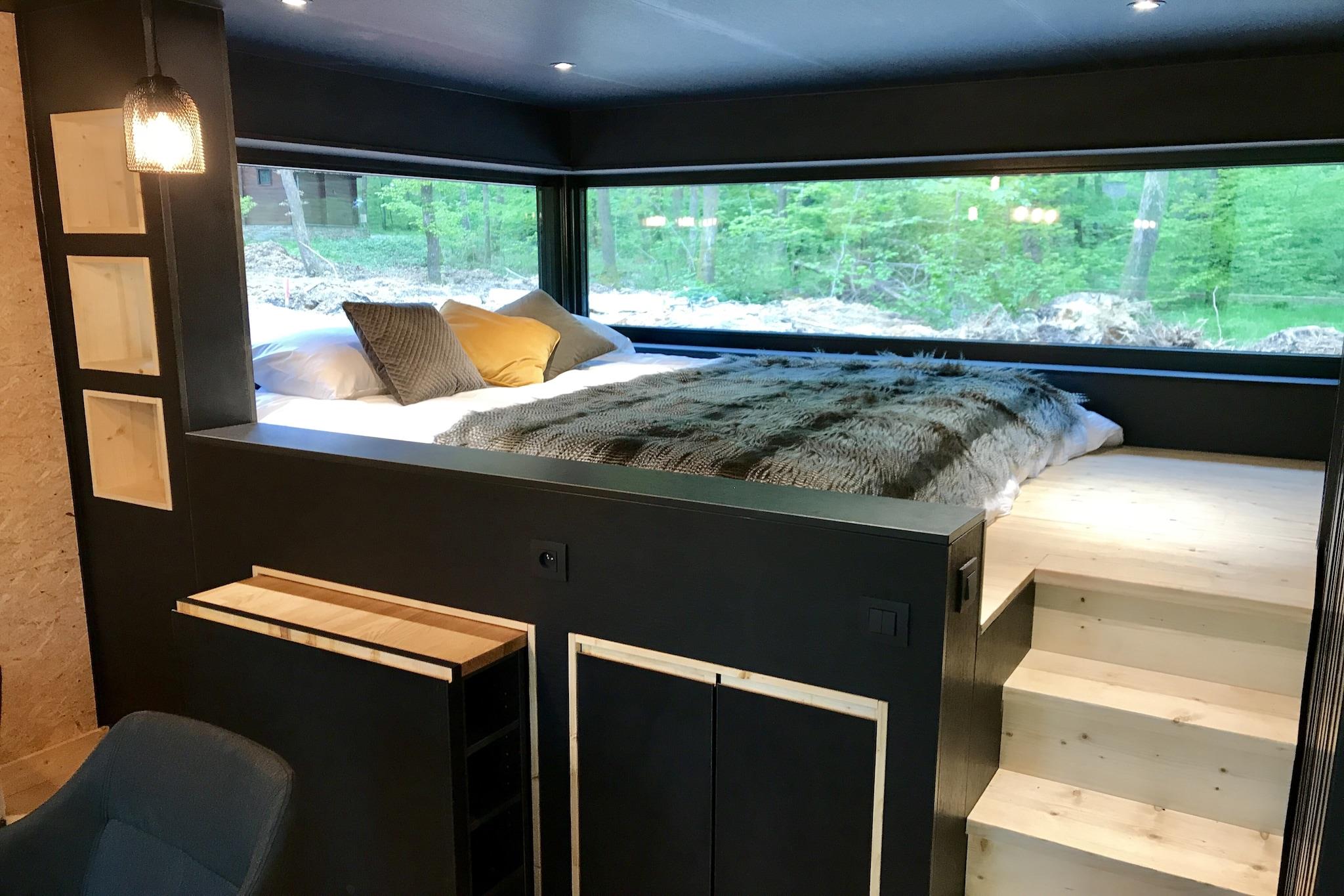 Bæredygtig skovflugt med moderne komfort Gemt væk i et fredfyldt, privat område af Village de Vacances Oignies, blander denne øko-lodge luksus med natur. Lodgen er designet som en krydsning mellem et smart træhus og et lille hjem, og den har naturlige materialer som halmisolering og en varmepumpe for komfort året rundt. Indvendigt gør smarte pladsbesparende funktioner - som et udtrækkeligt spisebord og hyggelig loungeboks, der forvandles til en kingsize seng - den perfekt til par eller små familier. Kæledyrsvenligt paradis i træerne Tag din firbenede ven med - kæledyr er velkomne! Omgivet af fredelige skovstier er det den perfekte legeplads for hunde at udforske uden snor. Du kan nyde lange vandreture, gåture ved søen eller bare slappe af på den delvist overdækkede terrasse, mens dit kæledyr slumrer i nærheden. For en sjov udflugt tilbyder nærliggende landsbyer kæledyrsvenlige caféer og picnicsteder, hvor både du og dit kæledyr kan føle sig hjemme. Fredelig afsondrethed med lokale smagsoplevelser i nærheden Selvom lodgen ligger dybt i naturen, er den kun en kort køretur fra charmerende byer som Couvin og Nismes, hvor du finder hyggelige taverner, bagerier og belgisk køkken. Efter en dag med eventyr kan du komme hjem for at nyde et måltid tilberedt i dit fuldt udstyrede køkken, eller slappe af med en film og et glas vin under stjernerne. Uanset om det er fred, leg eller nærhed, du leder efter - denne lodge tilbyder det hele i øko-luksus.