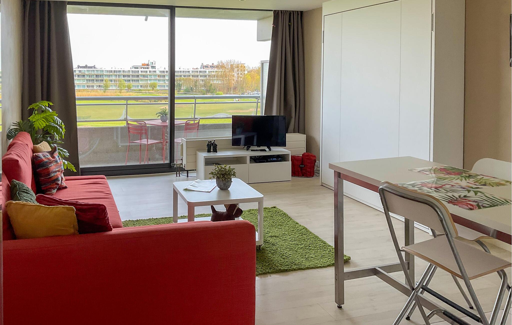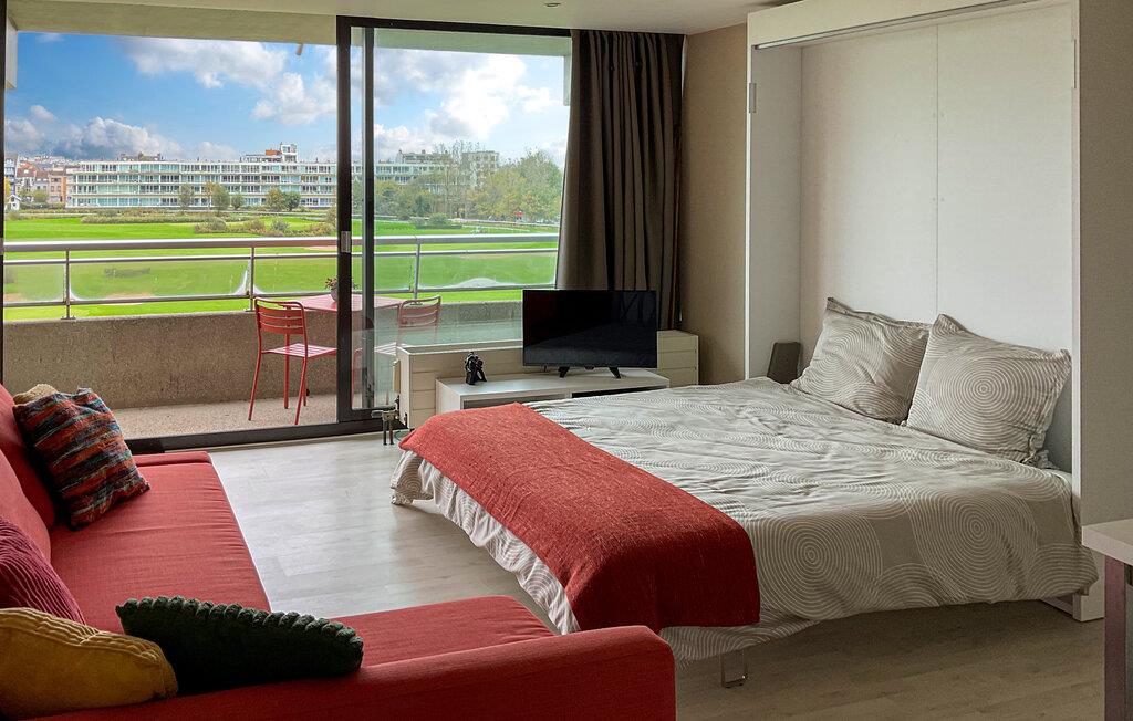 Denne skønne etværelses lejlighed ligger i Wellington Golf & Racecourse i Oostende. Der er kun 100 meter til boulevarden og de brede sandstrande. Lejligheden er både indrettet med god smag og er meget rummelig. Fra stuen og balkonen kan I nyde udsigten over det frodigt grønne omgivelser. Badeværelset er lækkert og køkkenet er indrettet med alt. I bor dejligt fredeligt og kan tage sporvognen til byens centrum med kasino, kursal, indkøbsgader og restauranter på kort tid. Tip til udflugter: Brügge med på UNESCOs verdensarvsliste, Sealife i Blankenberge og Plopasland de Panne, cykelture gennem klitterne.