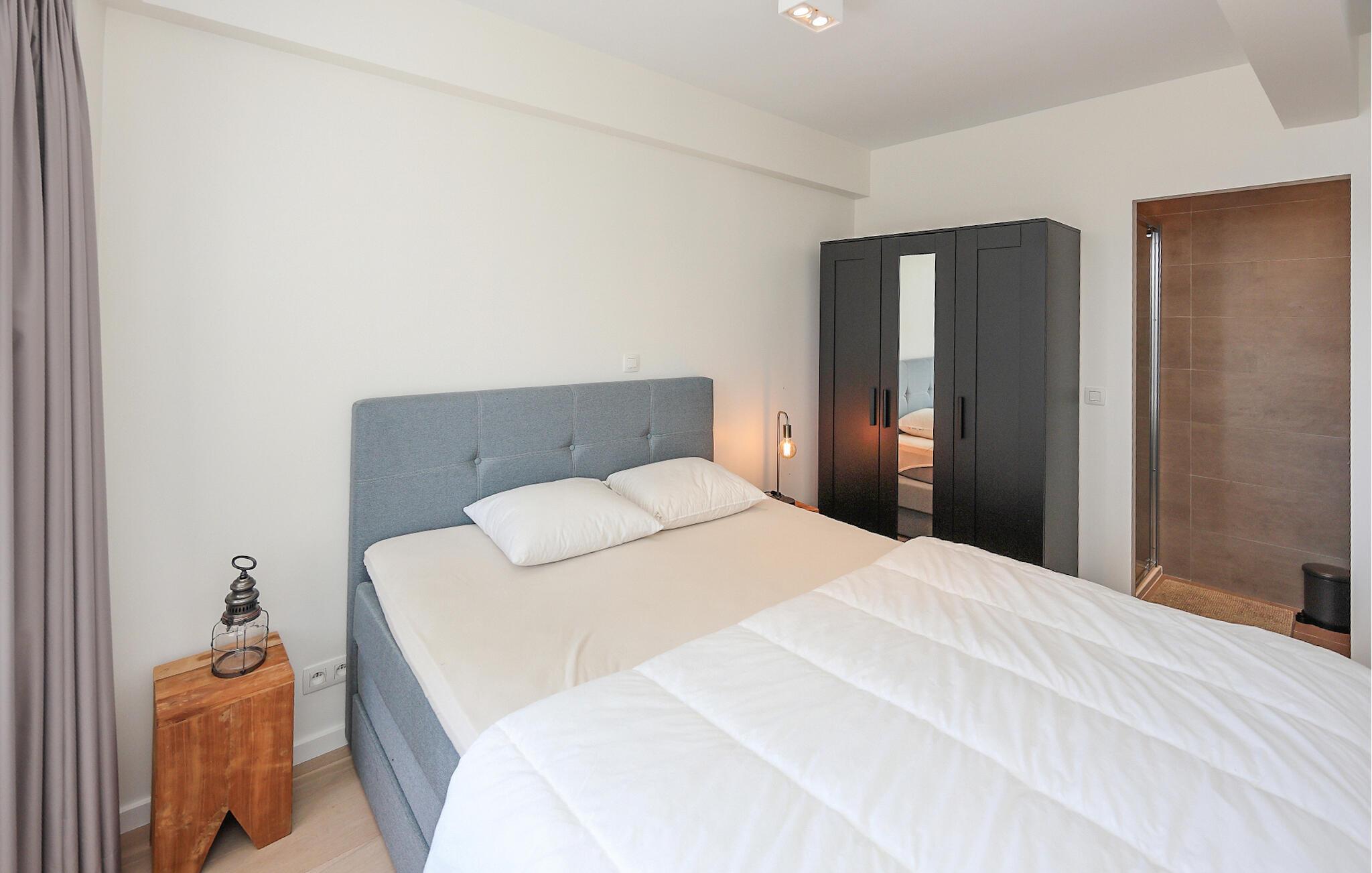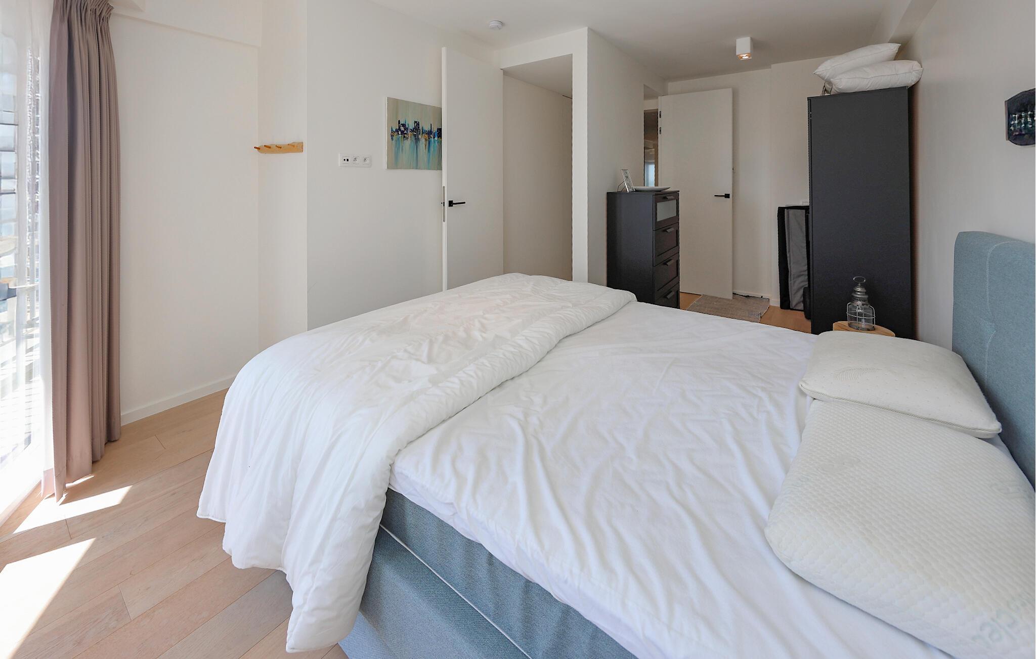 Denne lyse og moderne lejlighed har et højkvalitets og smagfuldt møbleret interiør. Her har I direkte udsigt over stranden, mens I kryber jer sammen i sofaen med jeres ferielæsning. Tilbered kulinariske lækkerier i det åbne køkken og sæt jer ved spisebordet. Efter en lang dag i den beroligende havluft kan I streame en film eller slappe af med et brætspil.
