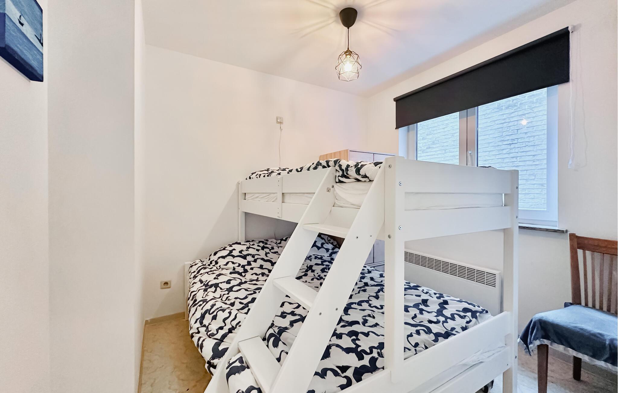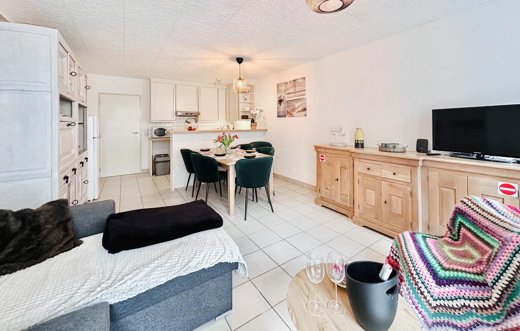Velkommen til denne nydelige lejlighed, der ligger i Oostende, og som danner rammen om en herlig ferie med familien. Boligen er flot indrettet med gode møbler, fine faciliteter og i rare farver, der gør det nemt at slappe af og hvile benene efter en aktiv feriedag. I det lille, men pæne køkken kan I lave familiens livretter og servere dem ved spisebordet, inden I runder aftenen af i sofaen med brætspil eller en god film.